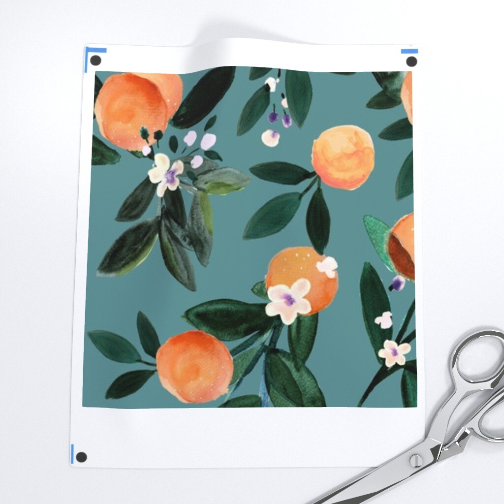 Citrus Flowers Teal Orange Watercolor Mandarin Oranges Custom Pre-pasted Wallpaper by Spoonflower Pre-Pasted Wallpaper 2FT Wide