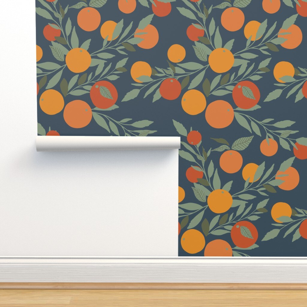 Citrus Summer Fruit Oranges Spring Home Kitchen Decor Botanical Nature Tropical Custom Pre-pasted Wallpaper by Spoonflower Pre-Pasted Wallpaper 2FT Wide