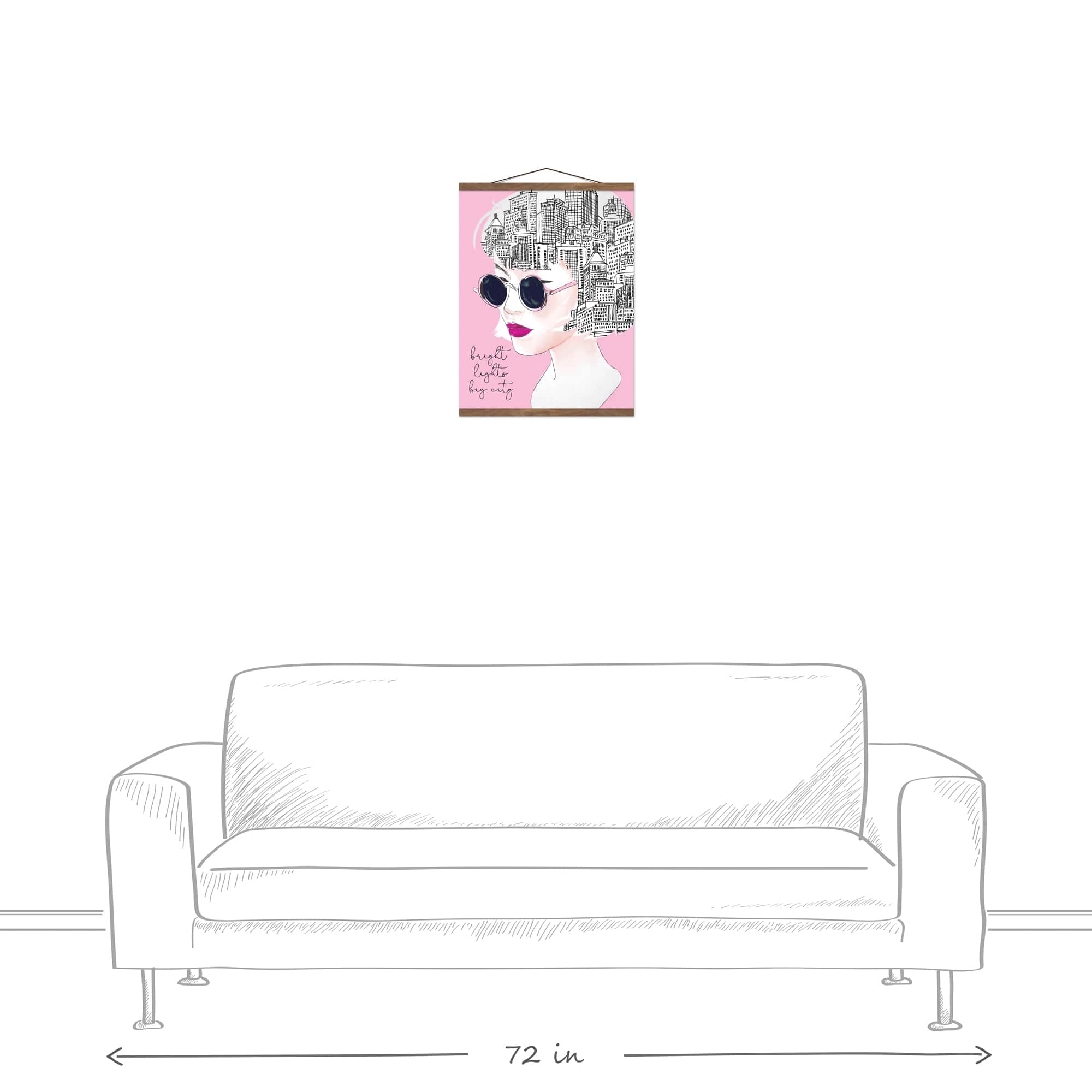 City On My Mind Sketch Teak Hanging Canvas
