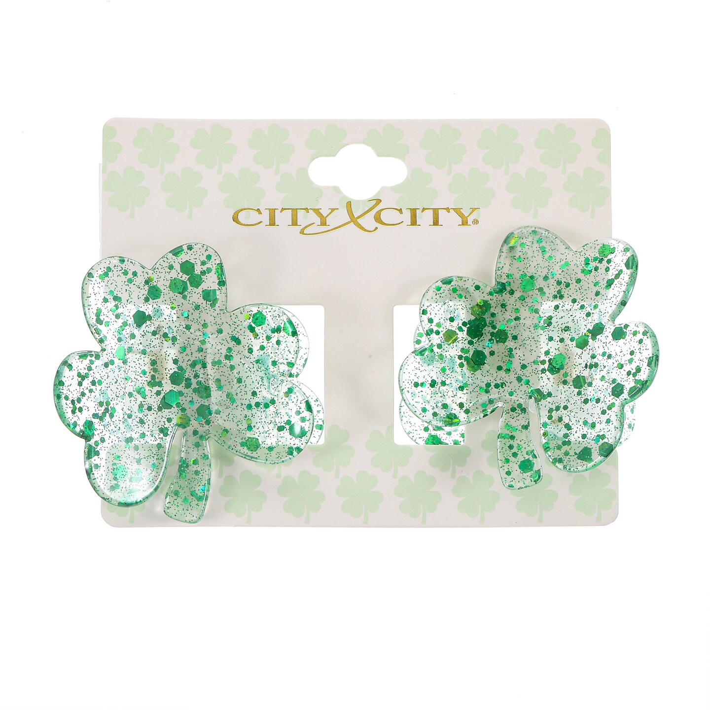 CityxCity St.Patrick's Day Set of 2 Clover & Sparkles Hair Clips