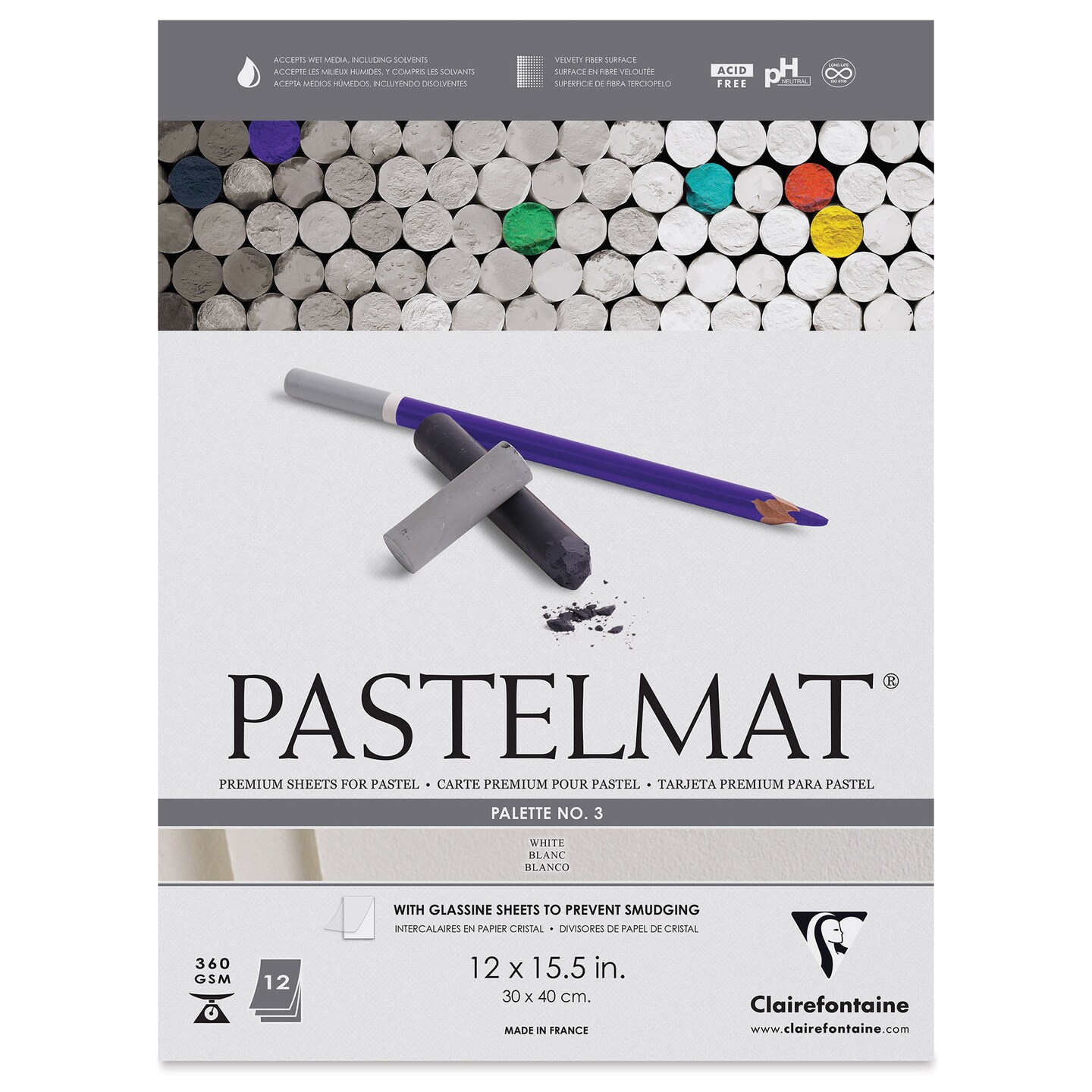 Clairefontaine Pastelmat Pad - 12" x 15-1/2", White, 12 Sheets