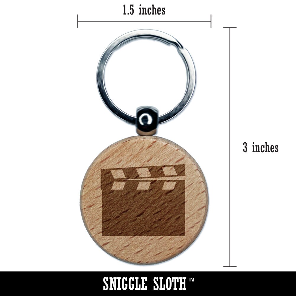 Clapperboard Movie Film Director Action Engraved Wood Round Keychain Tag Charm