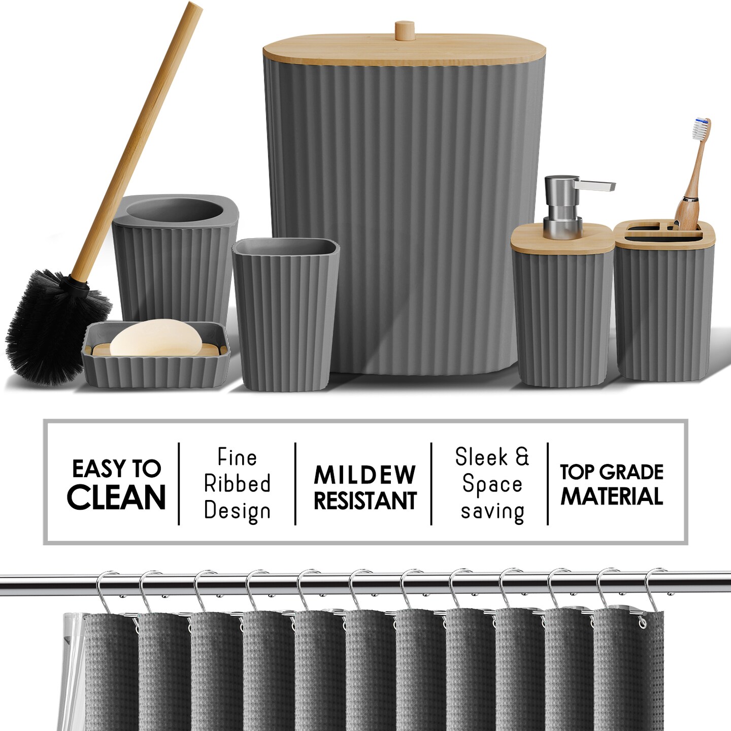 Clara Clark Bamboo Bathroom Accessories Set
