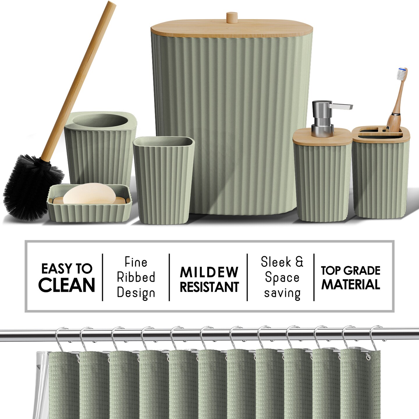 Clara Clark Bamboo Bathroom Accessories Set