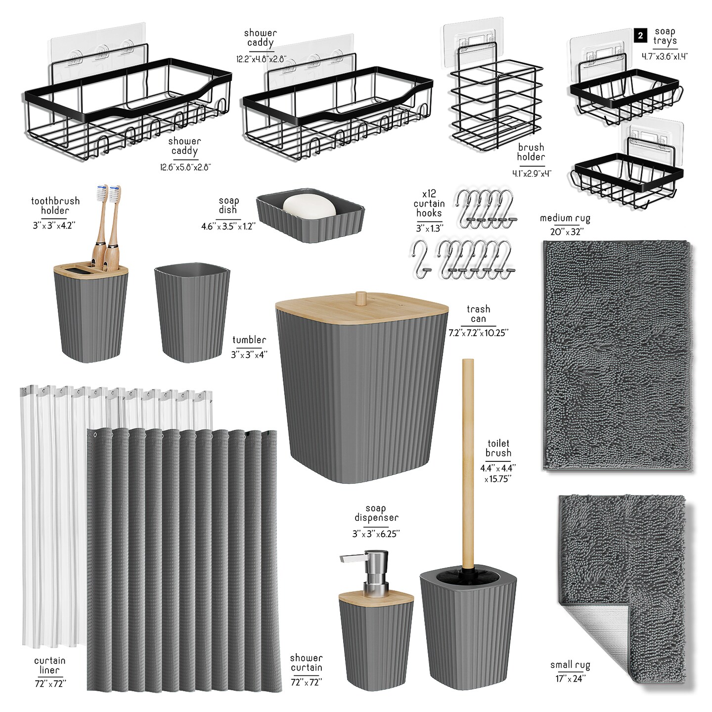 Clara Clark Shower Caddy & Bathroom Accessories Set with Bath Rugs