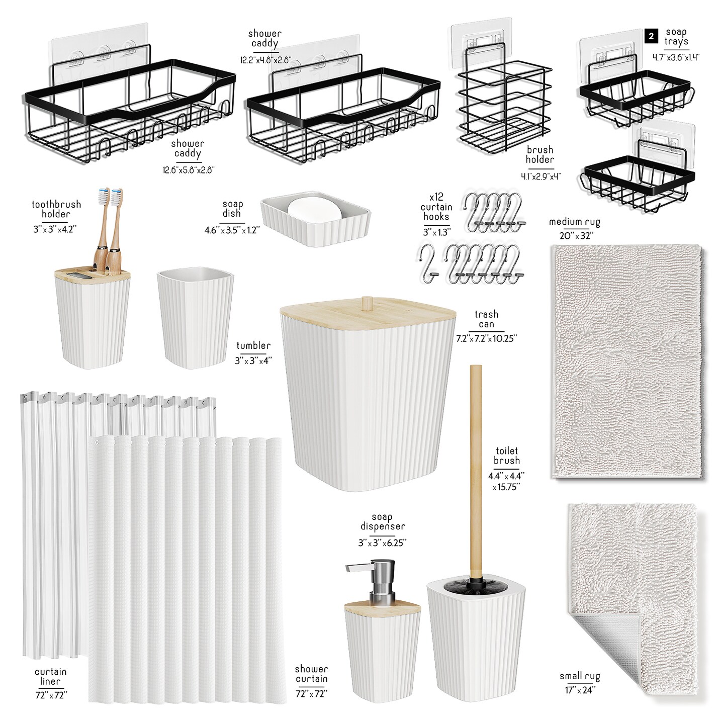 Clara Clark Shower Caddy & Bathroom Accessories Set with Bath Rugs