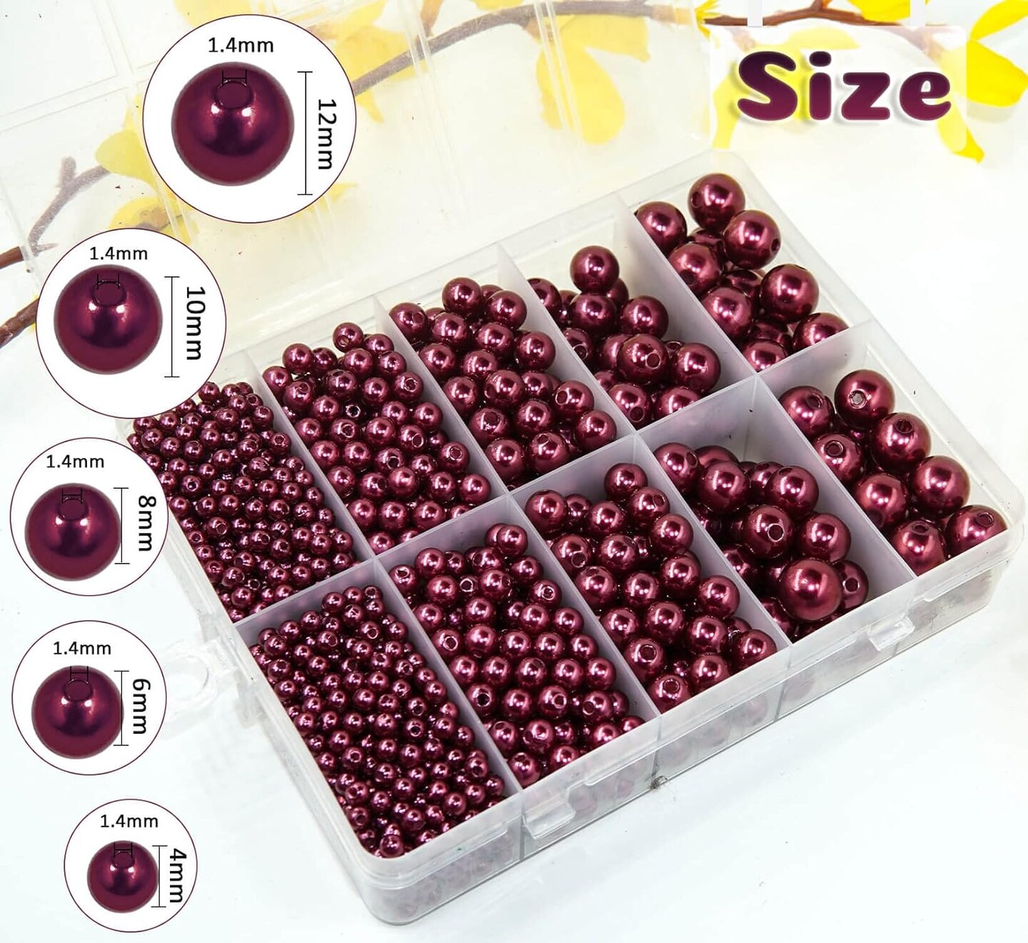 Claret Red Pearl Beads for Jewelry Making – 1750pcs Wine-Red Craft Beads with Hole, Sizes 4mm-12mm, Loose Spacer Beads for Necklace, Bracelet, Earrings, Choker & Wedding Dress Decor