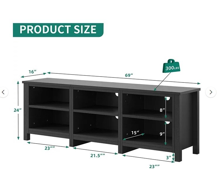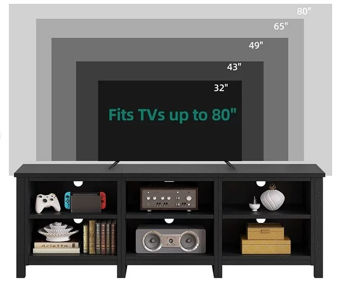 Classic 6 Cubby Modern TV Stand for TVs up to 80" DIY 69" Black Media Entertainment Centre Console Table for Living Room Bedroom