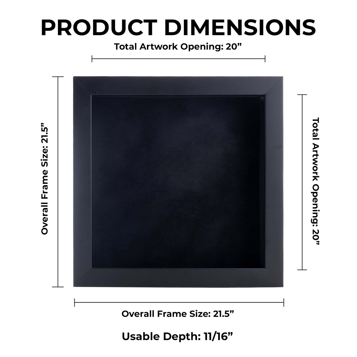 Classic Black Wood Shadown Box Frame with Acrylic Front - Black Suede Backing, 30 Sizes
