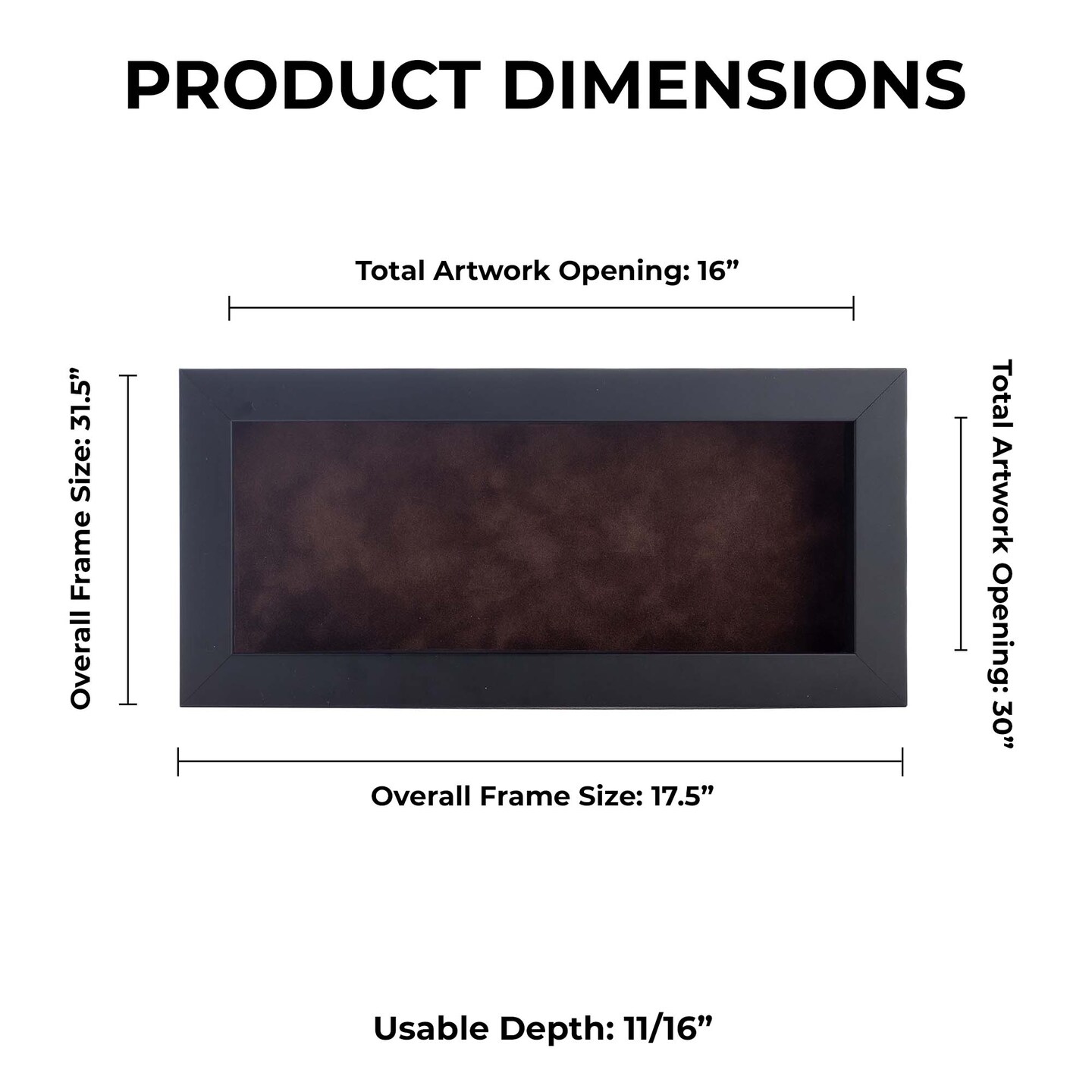 Classic Black Wood Shadown Box Frame with Acrylic Front - Brown Suede Backing, 30 Sizes