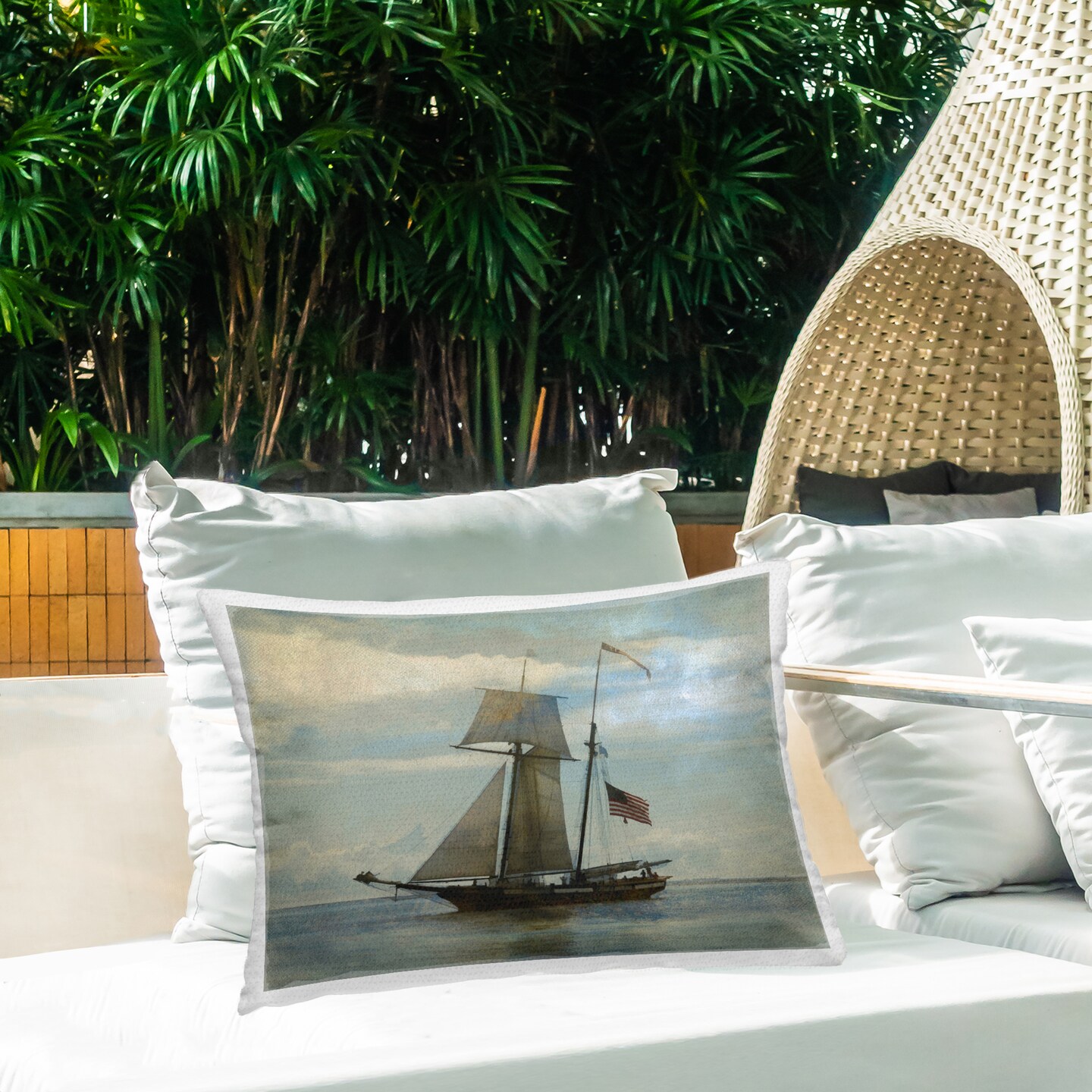 Classic Ship with Flag Outdoor Printed Pillow Design by Graffi*tee Studios, 14 x 7 x 20