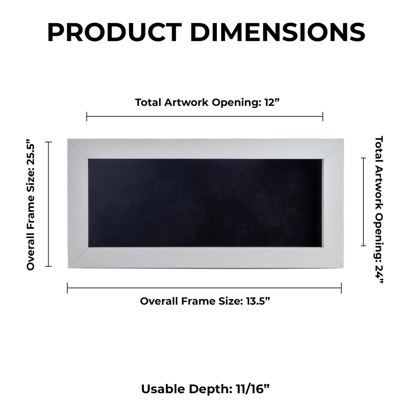 Classic White Wood Shadown Box Frame with Acrylic Front - Black Suede Backing, 30 Sizes