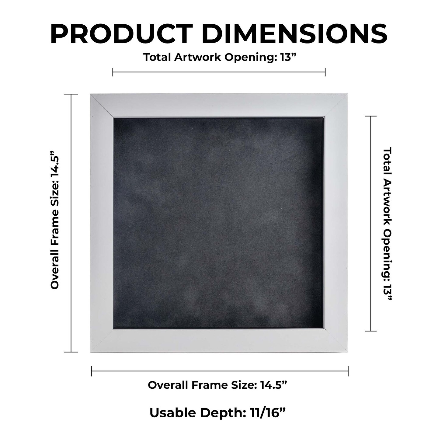Classic White Wood Shadown Box Frame with Acrylic Front - Dark Grey Suede Backing, 30 Sizes