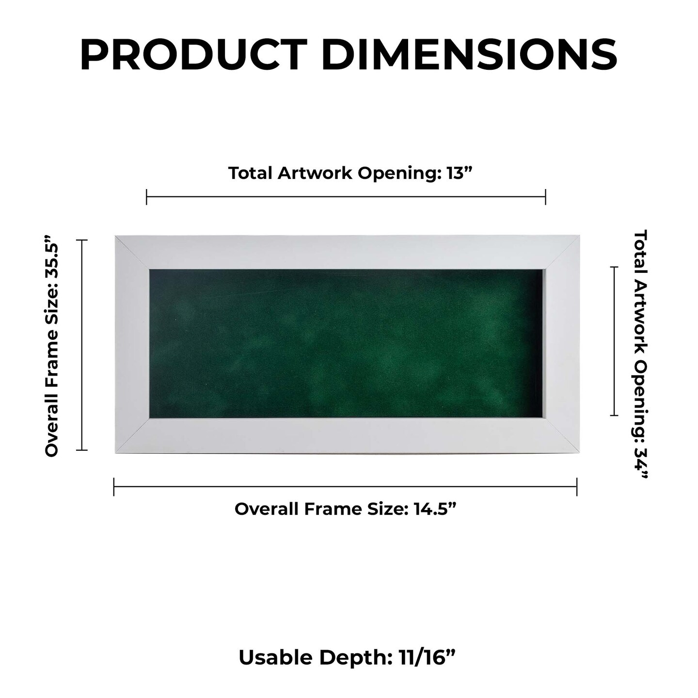 Classic White Wood Shadown Box Frame with Acrylic Front - Forest Green Suede Backing, 30 Sizes