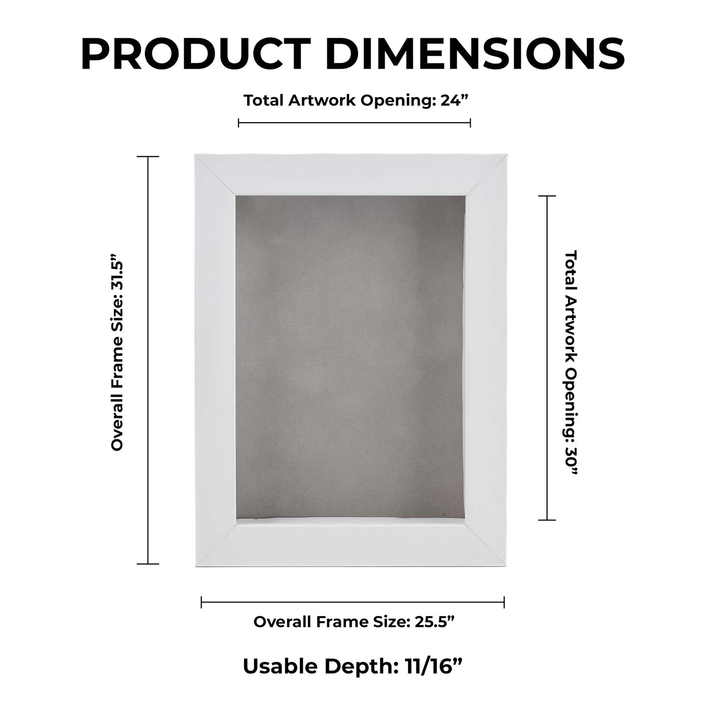 Classic White Wood Shadown Box Frame with Acrylic Front - Light Brown Suede Backing, 30 Sizes