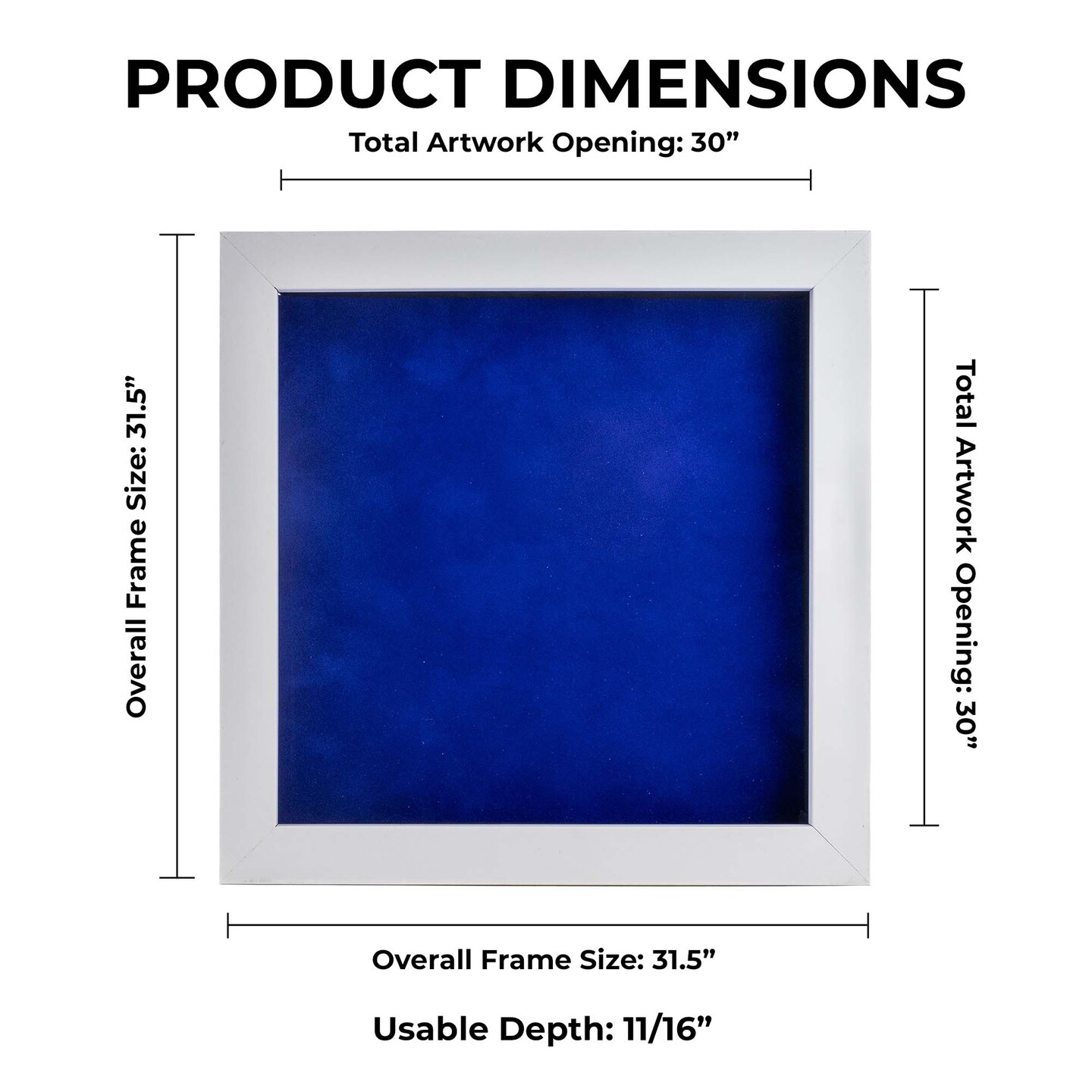 Classic White Wood Shadown Box Frame with Acrylic Front - Royal Blue Suede Backing, 30 Sizes