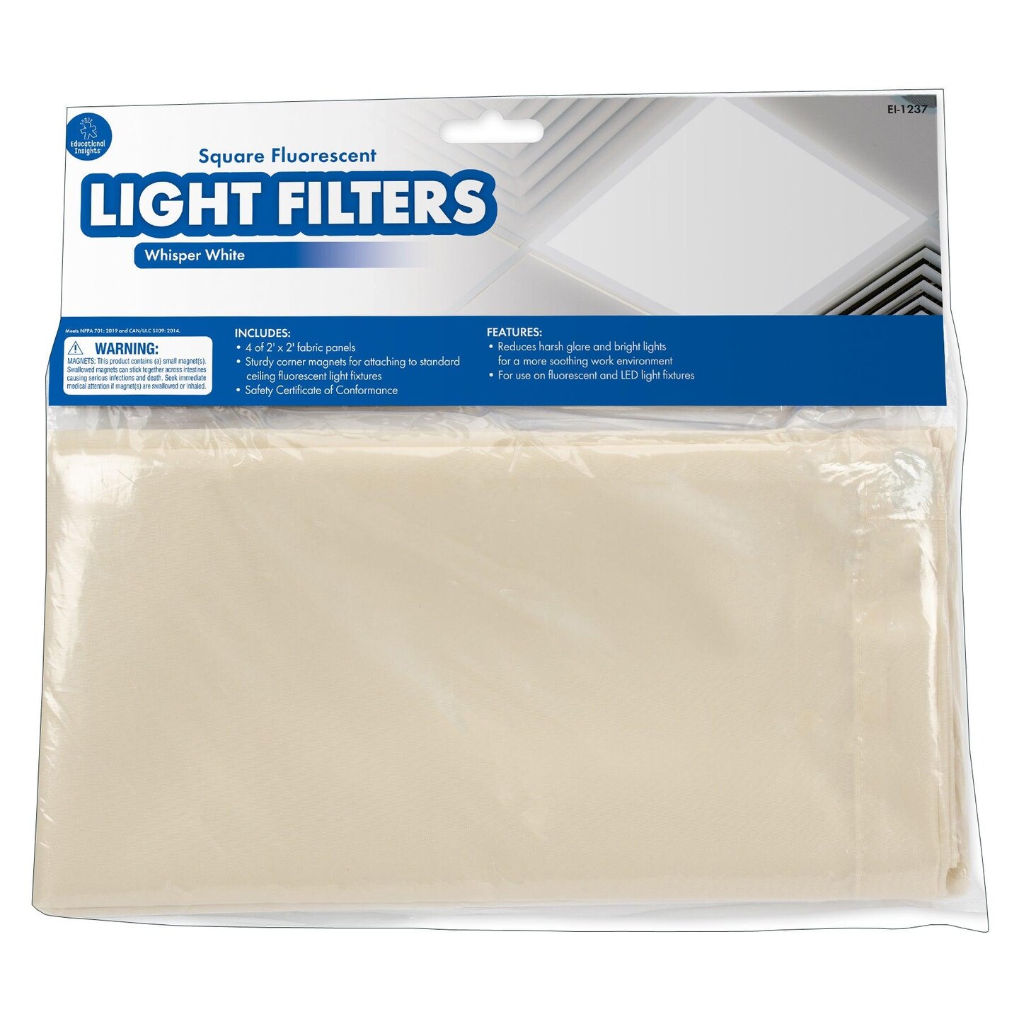 Classroom Light Filters, 2' x 2', Whisper White, Set of 4