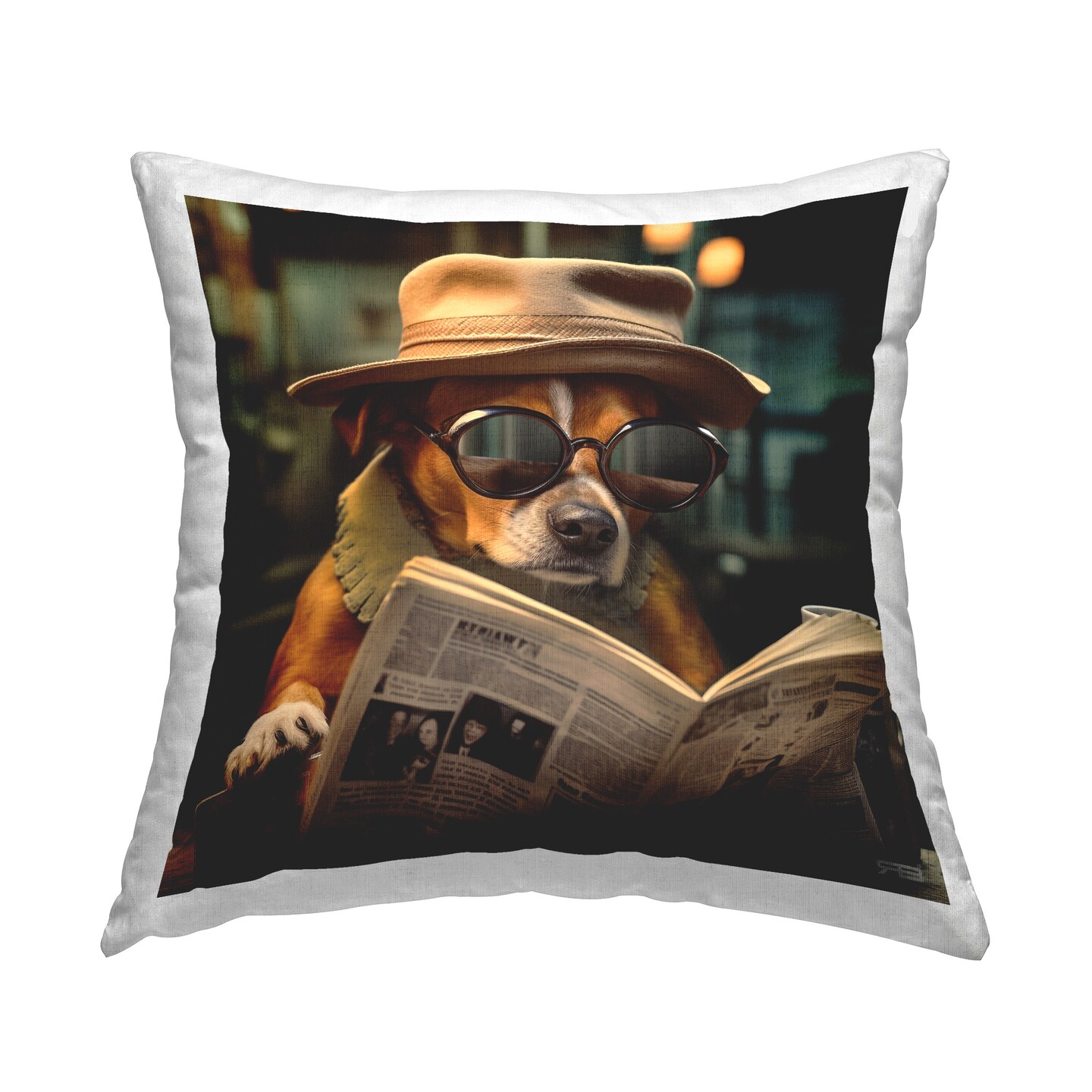 Classy Dog & Newspaper Design by RB Throw Pillow