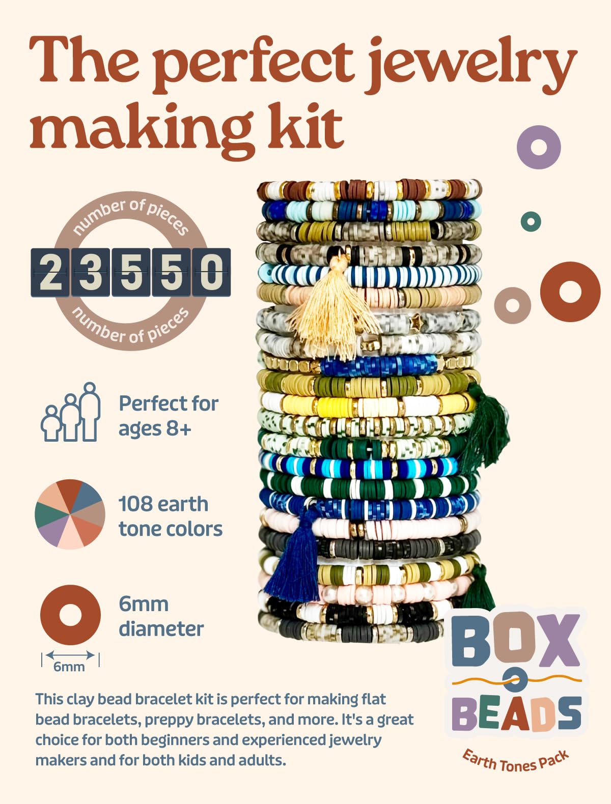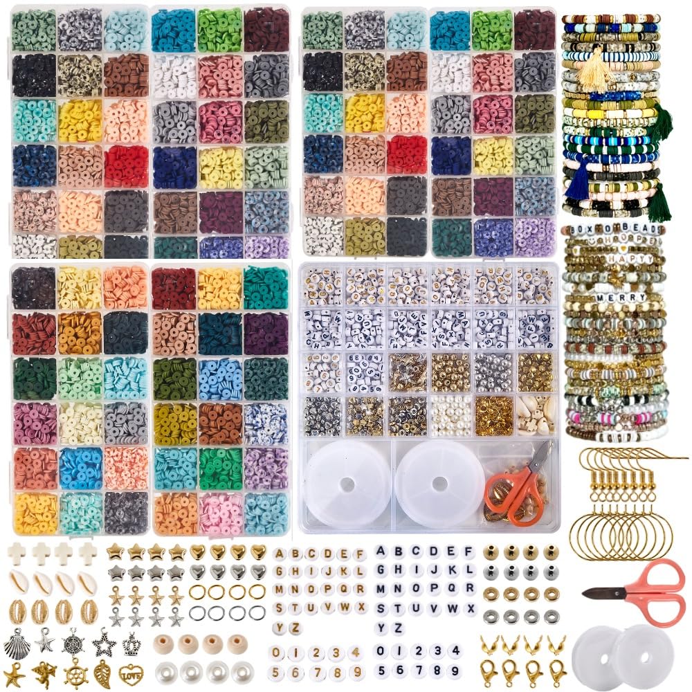 Clay Beads Bracelet Making Kit, 23550 Pcs Box-O-Beads Friendship Bracelet, Earring and Jewelry Making Kit, 108 Color Clay Heishi and Letter Beads with Spacers Charms, Crafts Gift Pack for Girls