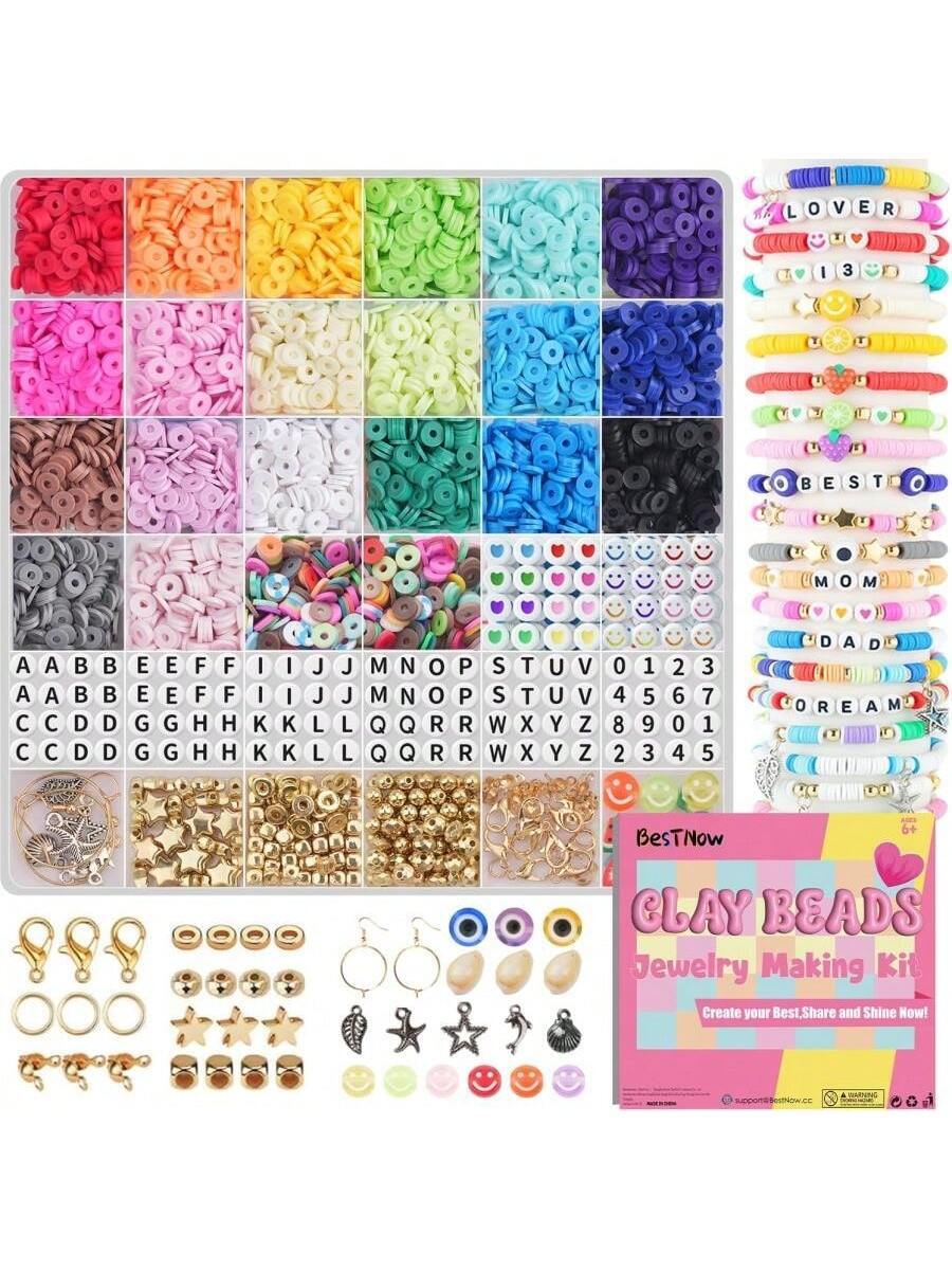 Clay Beads Bracelet Making Kit, 5000 Pcs Friendship Bracelet Kits Flat Beads For Jewelry Making