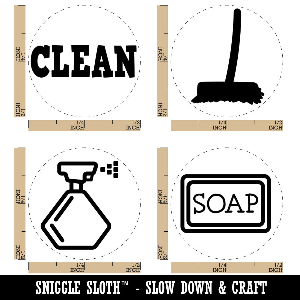 Cleaning Spray Bottle Broom Sweep Soap Rubber Stamp Set for Stamping Crafting Planners