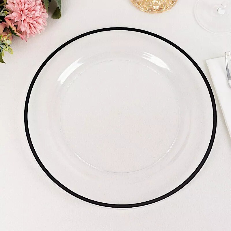 CLEAR 10 Round 10" PLASTIC Dinner PLATES Black Rim