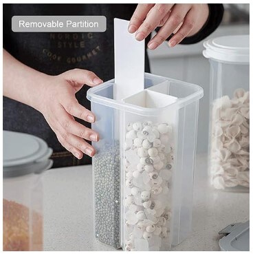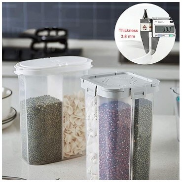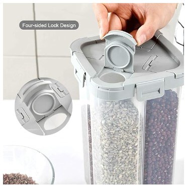 Clear 2.3L Airtight Kitchen Food Storage Container with Lids and Compartments for Grain, Sugar, Flour, Rice, Nuts, and Snacks