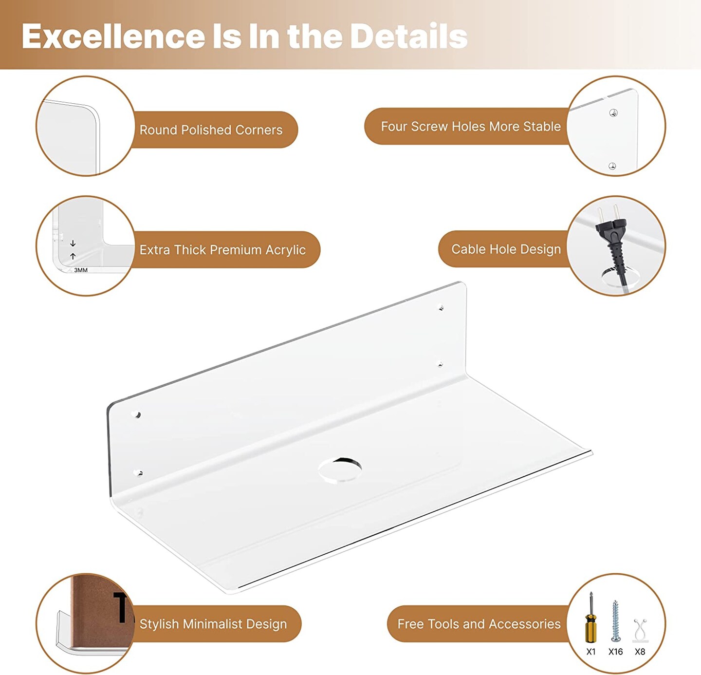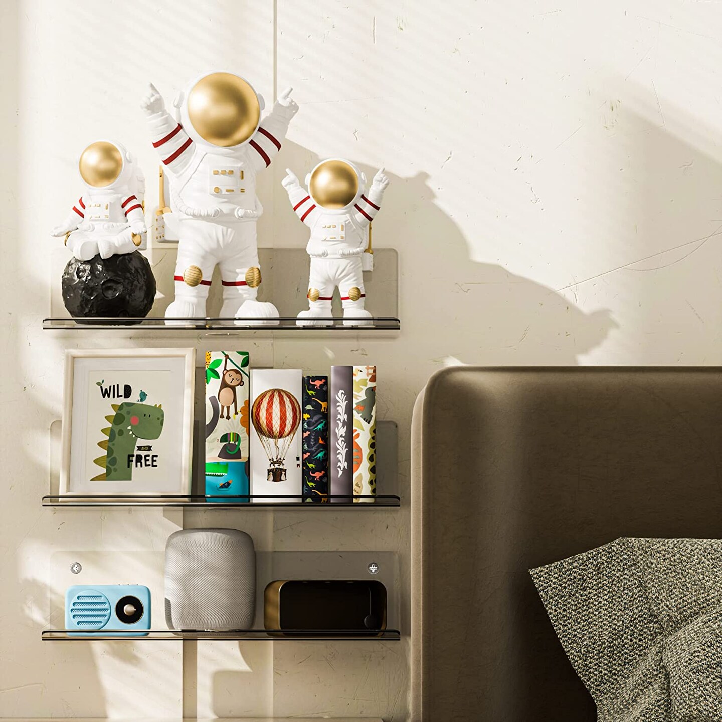 Clear Acrylic Floating Shelves 4 Pack, Wall Mounted Shelves with Free Tool and Accessories