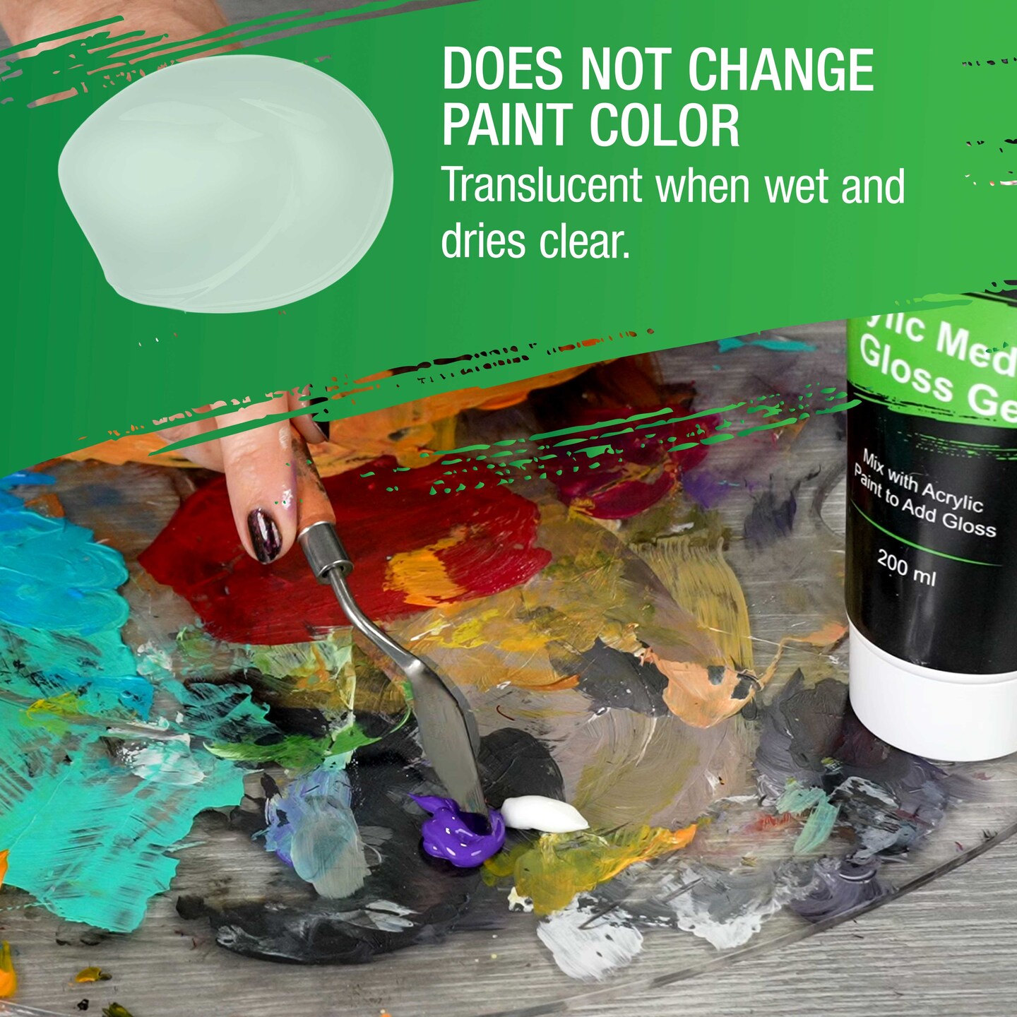 Clear Acrylic Medium Gloss Gel, 200ml - (6.7 Ounce) Tube - Increase Gloss, Viscosity & Transparency in Acrylic Paints