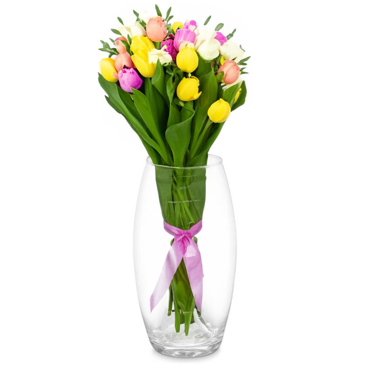 Clear Glass Bullet Vase Slim Oval Tall Decorative Display