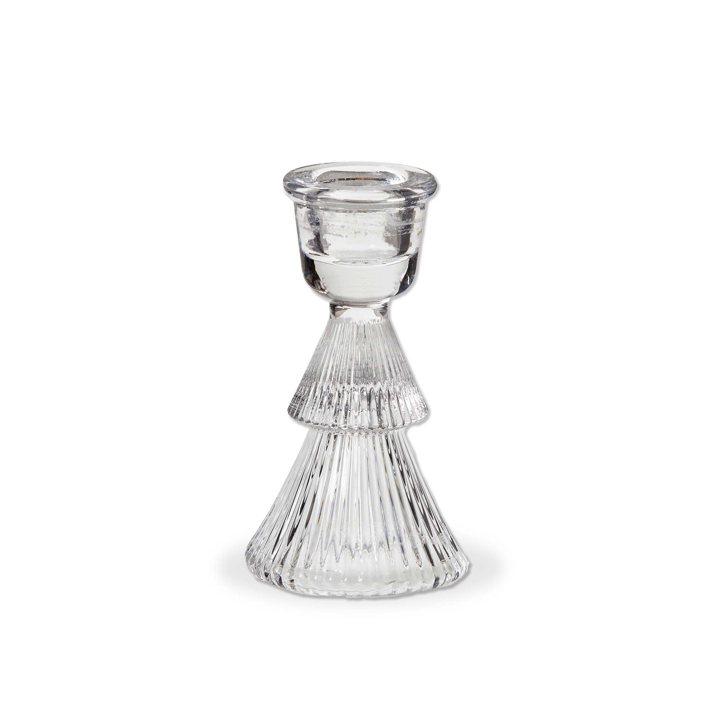 Clear Glass Ribbed Taper Candle Holder - Elegant Christmas Decor, 2.5" x 2.5" x 4" - Perfect for Taper Candles