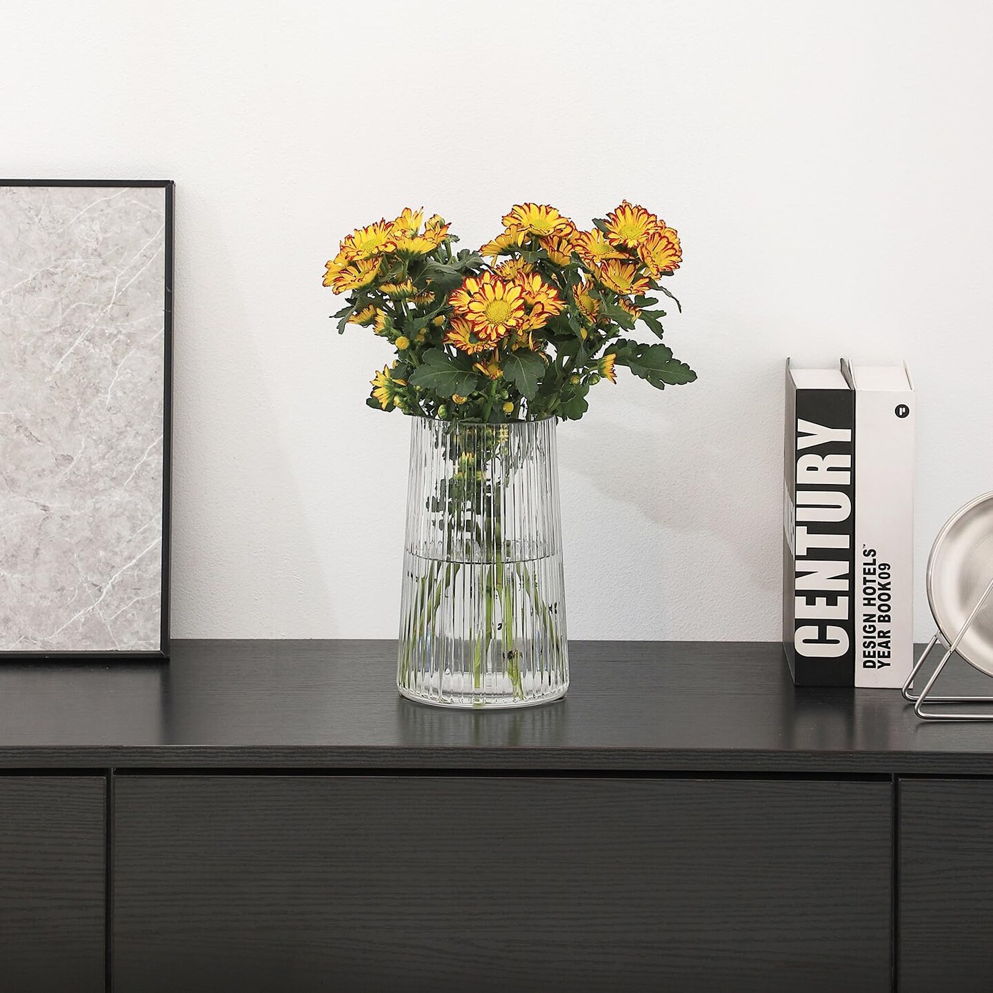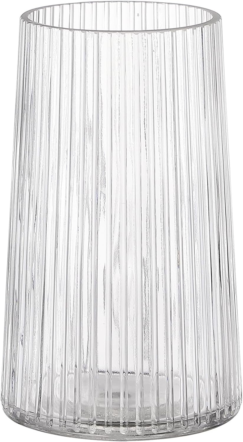 Clear Glass Vase for Flower, Glass Flower Vase, Flower Vase for Bouquet, Modern Glass Vase, Ribbed Glass Vase for Living Room, Bedroom, Dining Table, Office, Wedding, Centerpieces, 8 Inches