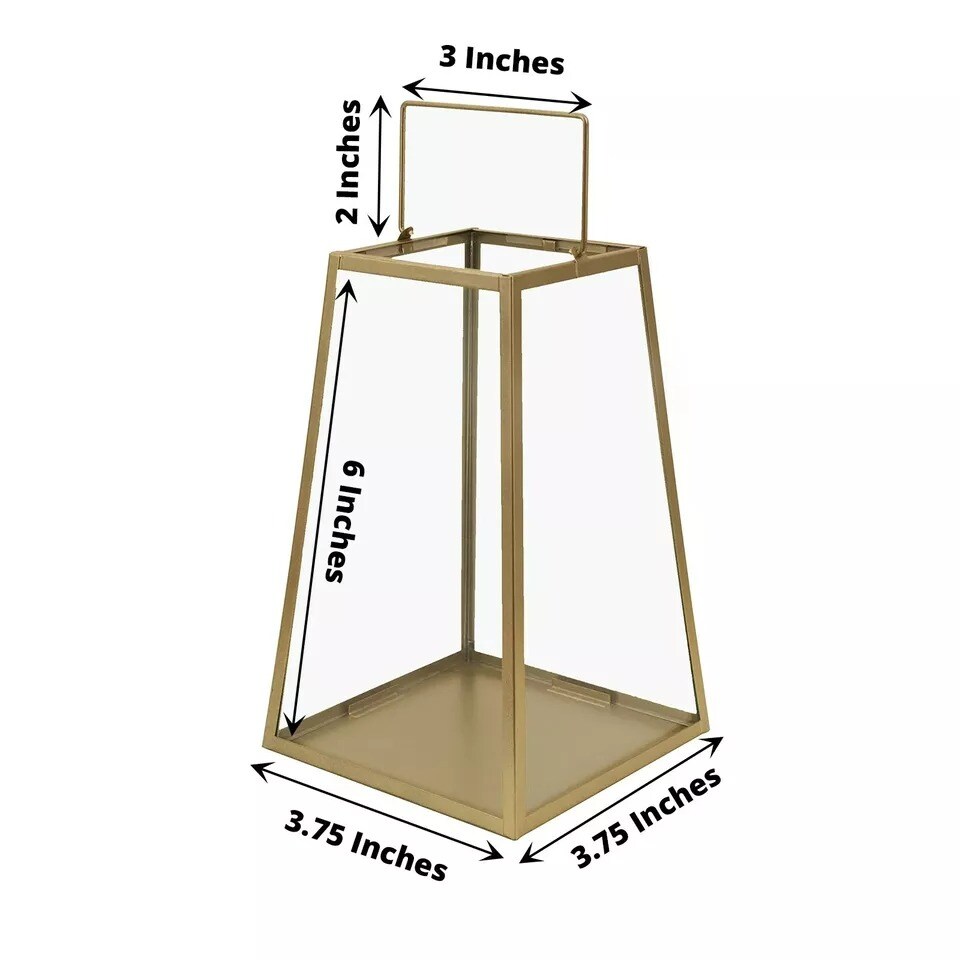 CLEAR GOLD 2 Geometric 6" Metal Lantern CANDLE HOLDERS Hanging Terrariums Party