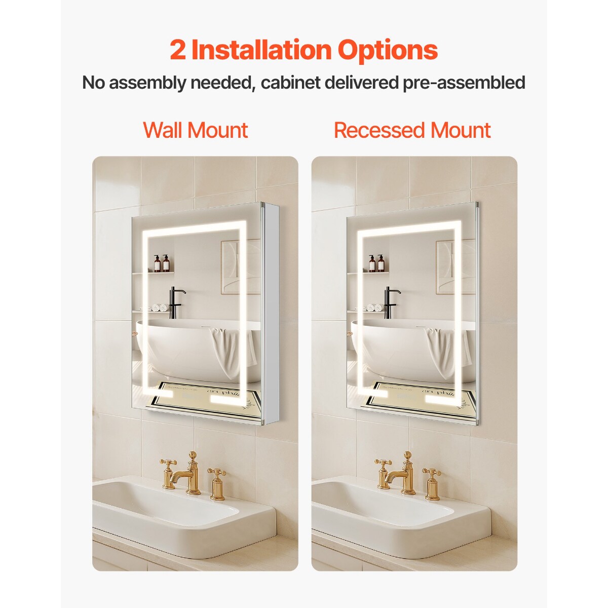 Clear LED Bathroom Mirror Cabinet with Anti-Fog, Dimmable Light and Adjustable Shelves