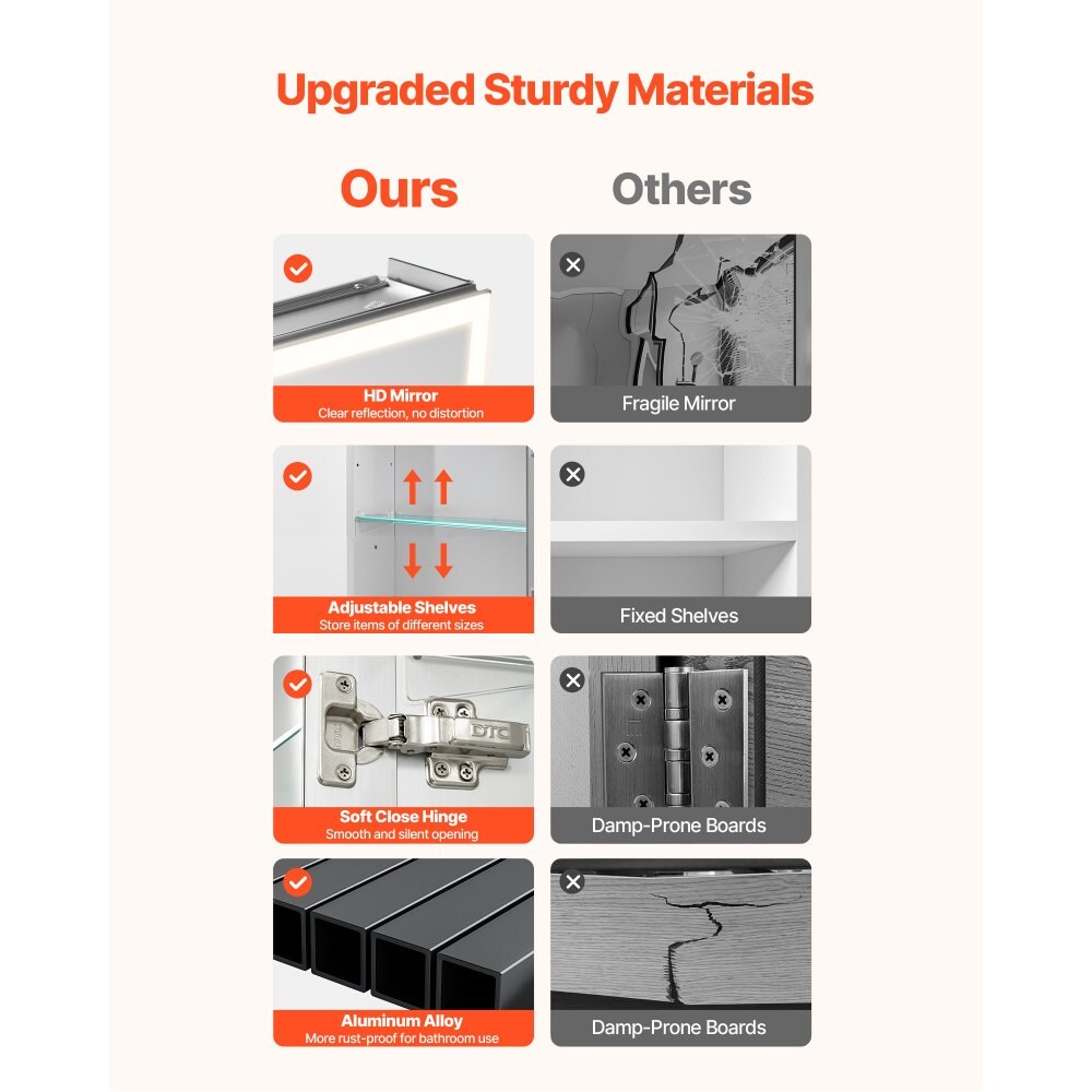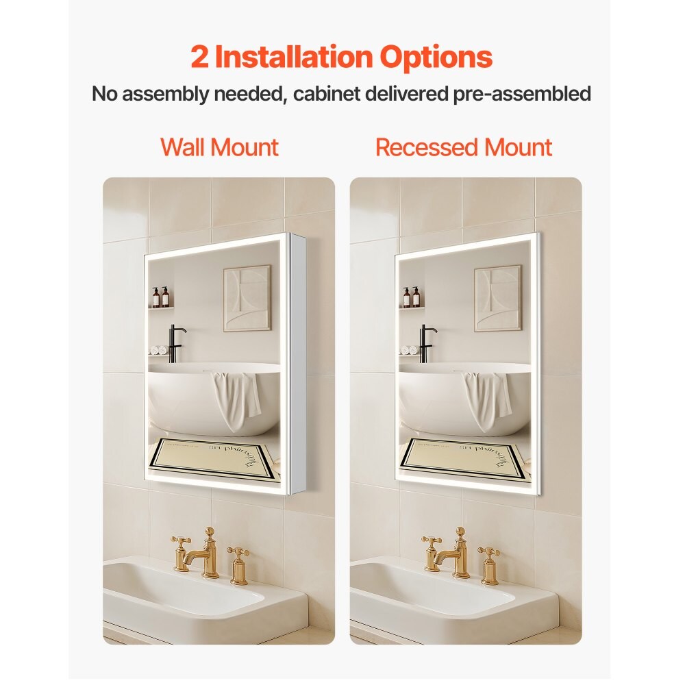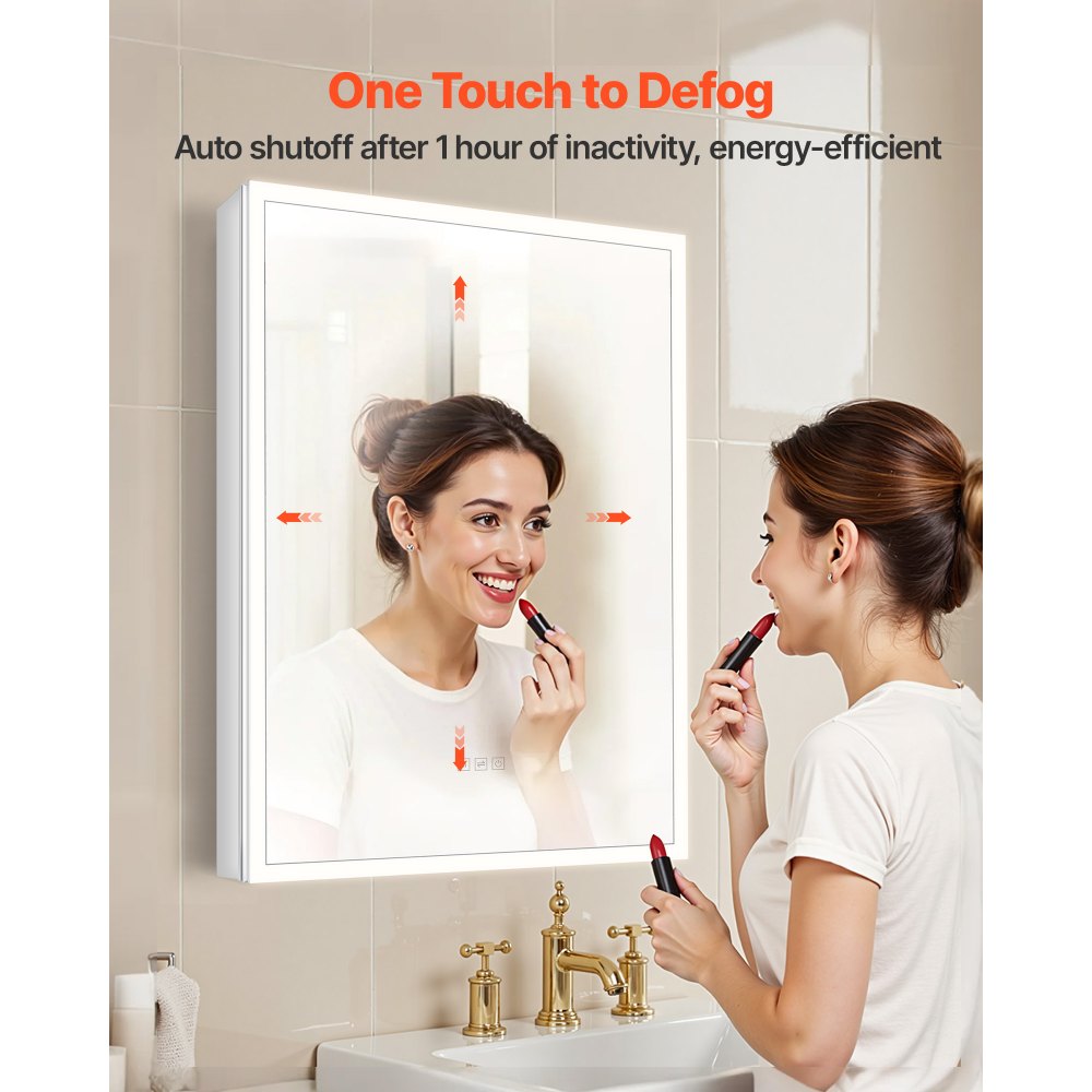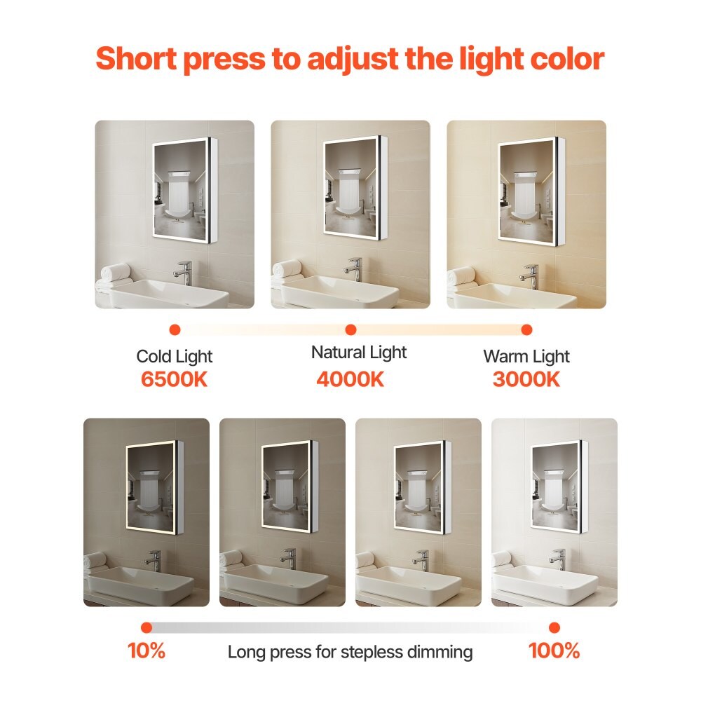 Clear LED Lighted Bathroom Mirror Cabinet with Anti-Fog, 10x Magnifier and Dimming