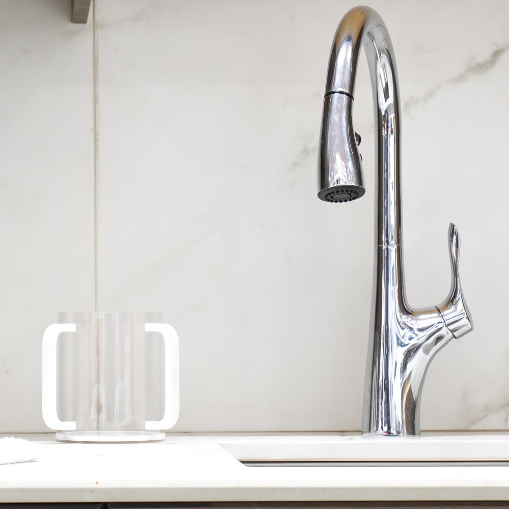 Clear Lucite Wash Cup with White Base and Handles