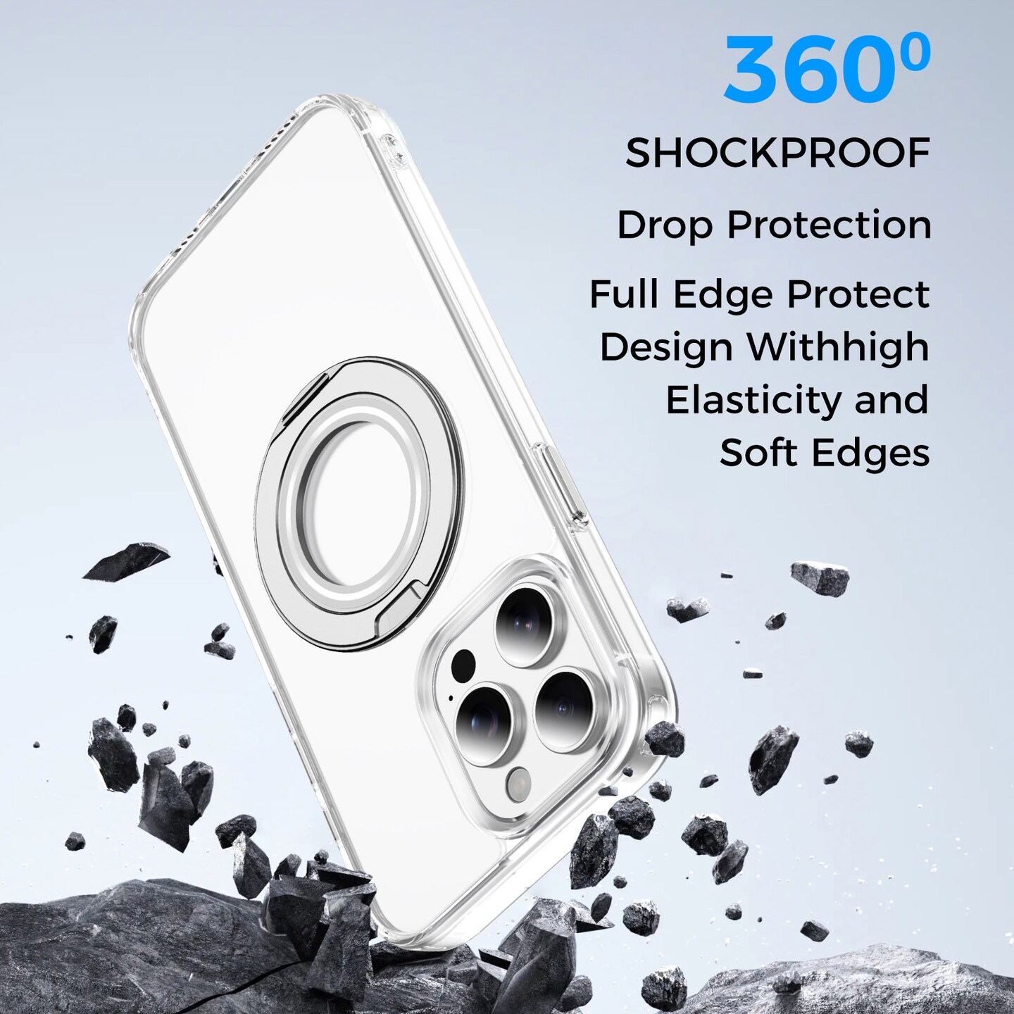 Clear Magnetic Case with Ring Stand for various Apple iPhone 17, 16, 15 Models, Fit for MagSafe, Shock Absorption Bumper, Soft Flexible TPU, Shock Resistant, Fingerprint Resistant, Protection