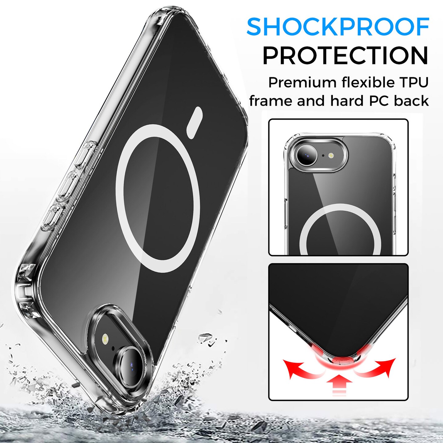Clear Magnetic Case with Ring Stand for various Apple iPhone 17, 16, 15 Models, Fit for MagSafe, Shock Absorption Bumper, Soft Flexible TPU, Shock Resistant, Fingerprint Resistant, Protection