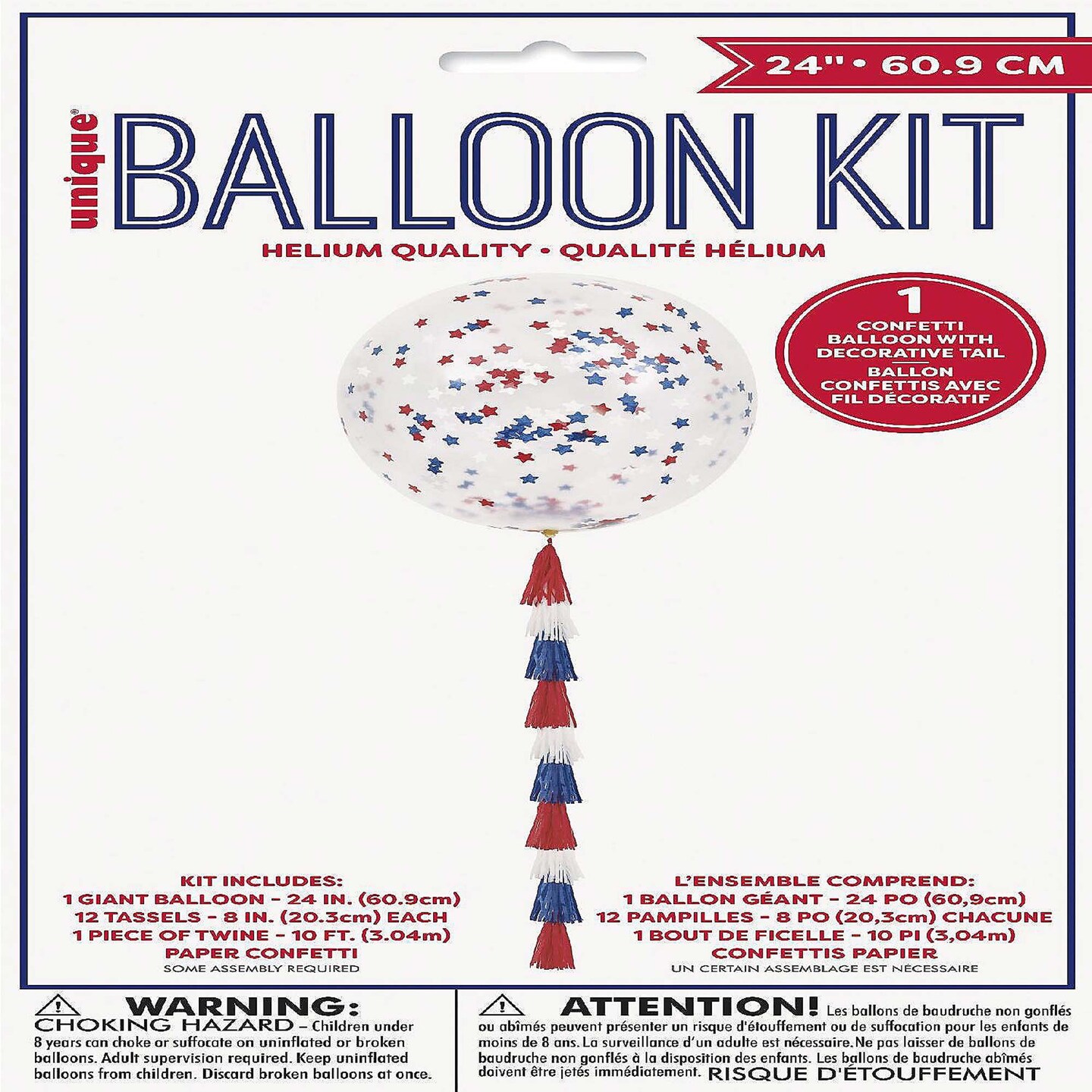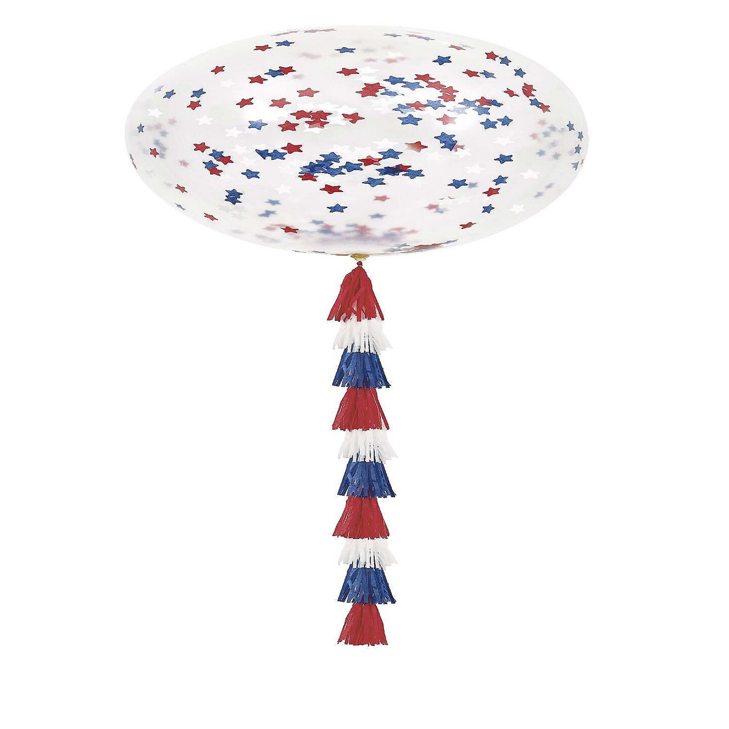 Clear Patriotic Confetti Filled Latex Balloon with Tassel Tail