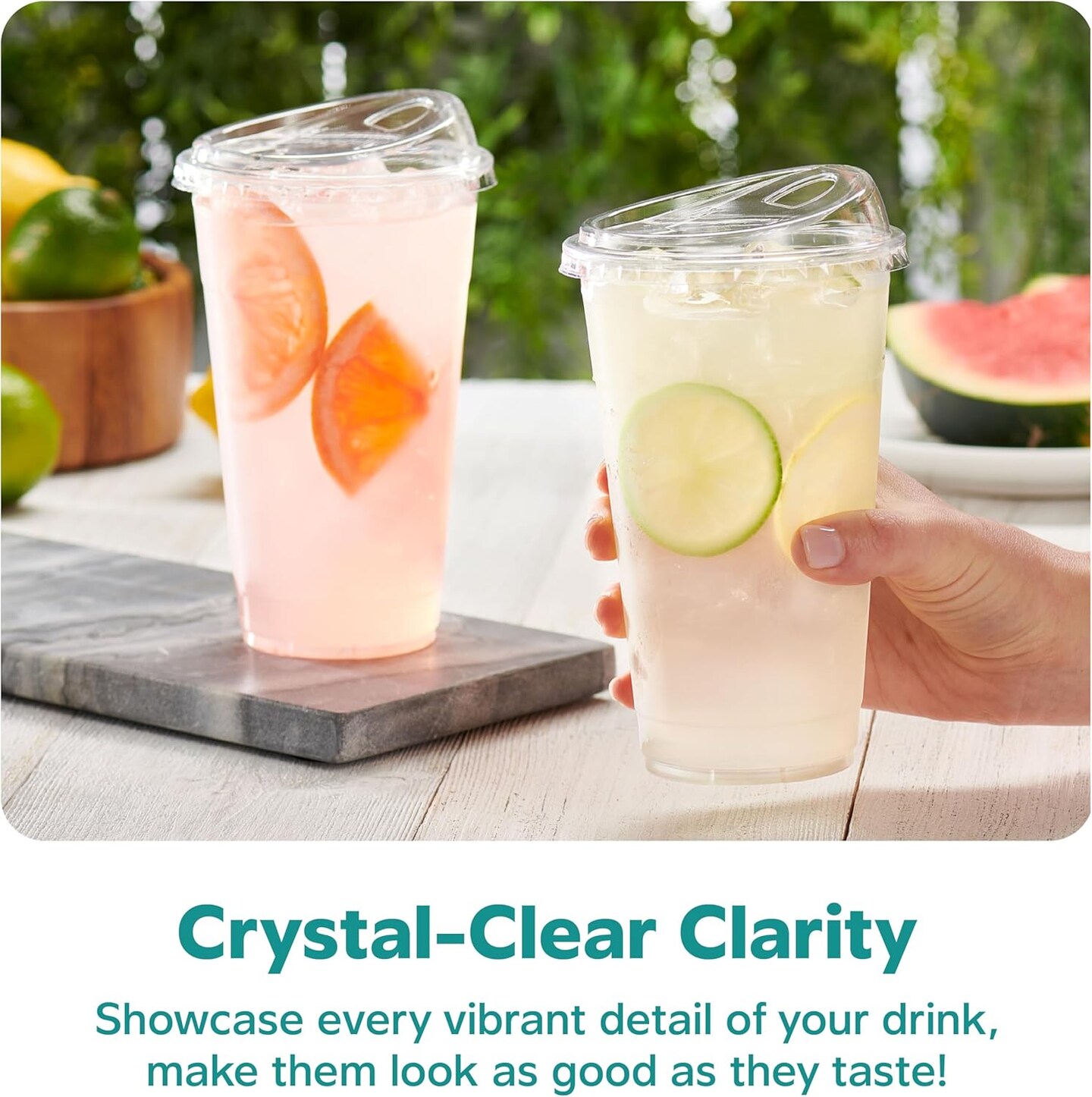 Clear Plastic Cups with Lids [24 oz - 50 Count - Disposable Iced Coffee Drink Cups with Strawless Sip Lids for Smoothies, Juices, and More - Formerly Comfy Package