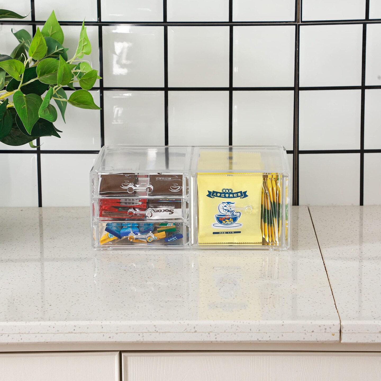 Clear Stackable Storage Bins,Plastic Storage Organizer and Small Drawer Organizer With 4 Drawers for Make Up,Skincare Product,Craft,Beauty and Desktop Drawers Organizer Storage
