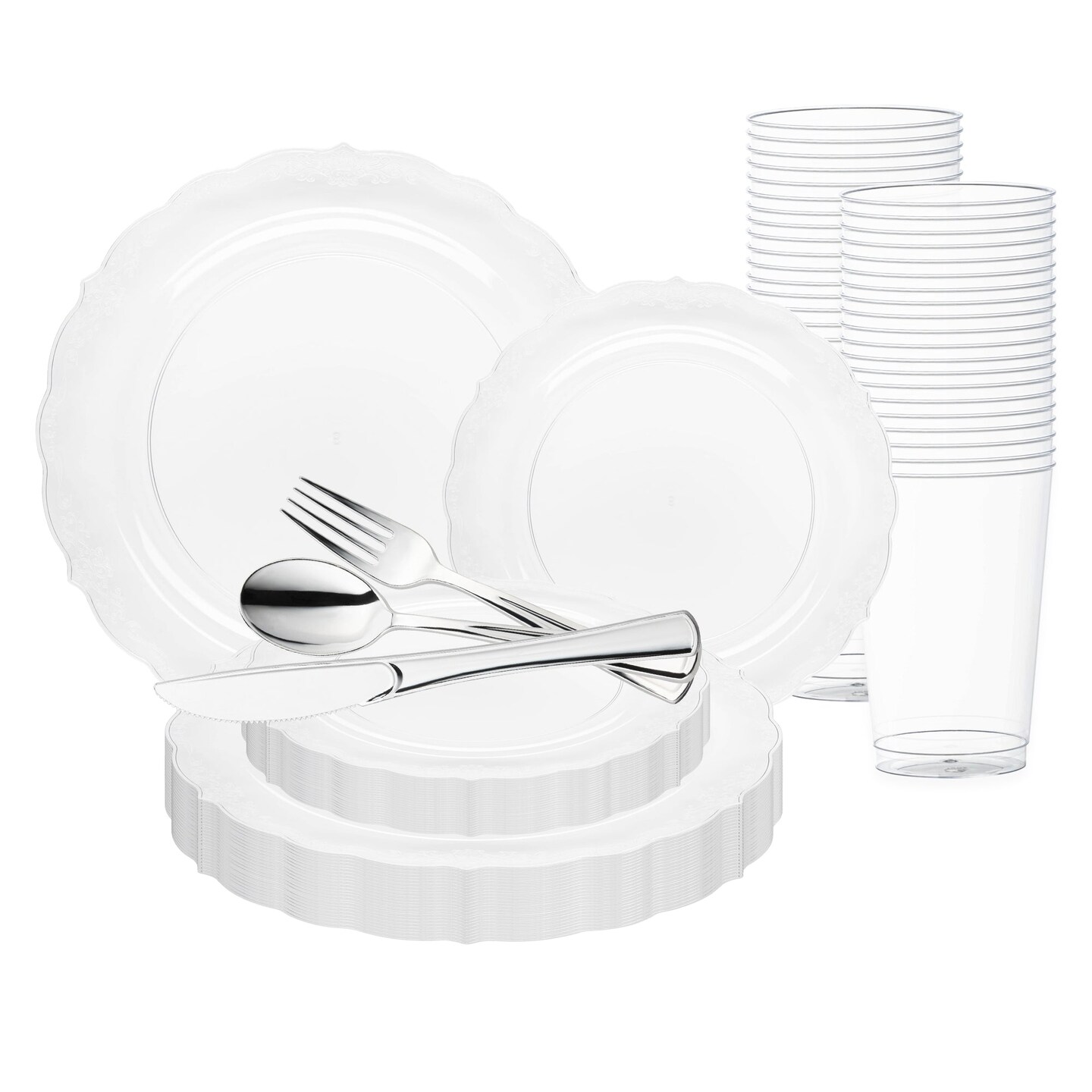 Clear Vintage Round Disposable Plastic Wedding Value Set (20 Settings)