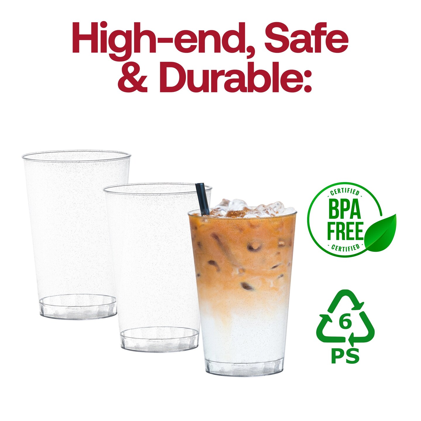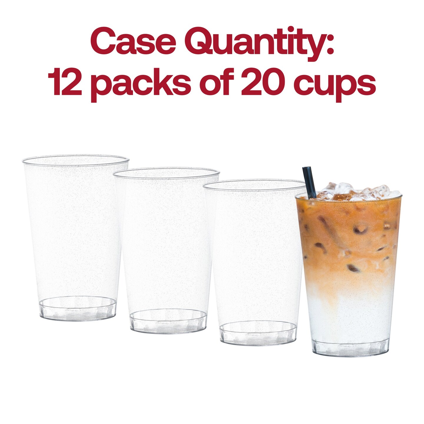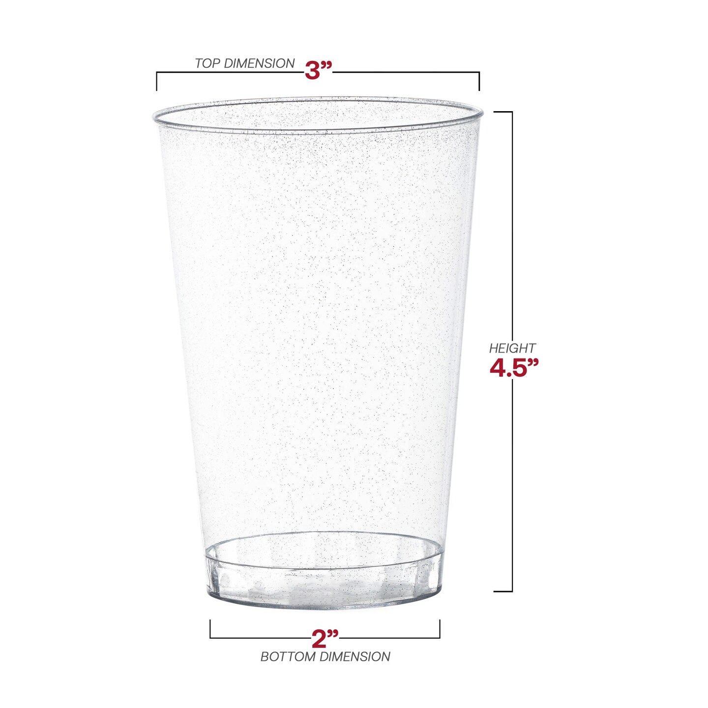 Clear with Silver Glitter Round Disposable Plastic Tumblers - 12 oz. (240 Cups)