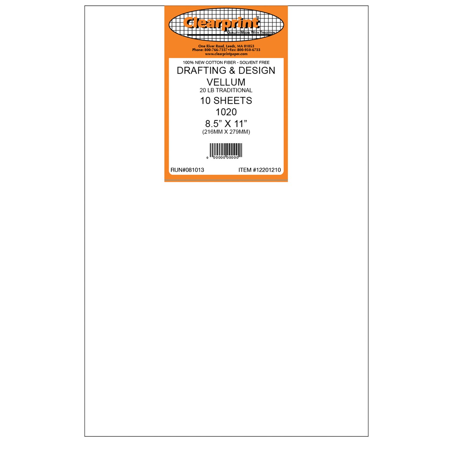 Clearprint 8.5" x 11" 1020H Vellum Sheets with 10x10 Fade-Out Grid, 20 lb., 100% Cotton, Translucent White, 10 Sheets Per Pack, 1 Pack