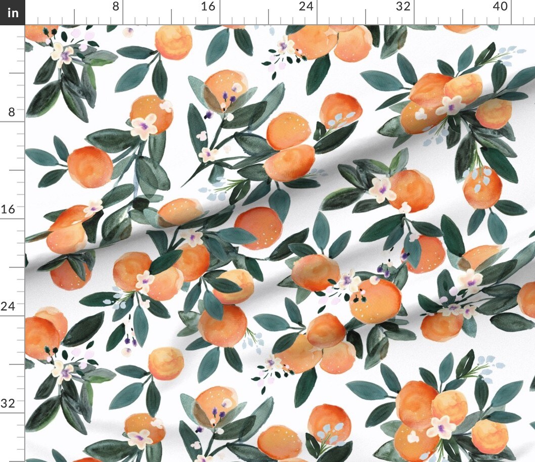 Clementine White Oranges Vintage Fruit Citrus Summer Orchard Custom Printed Fabric by Spoonflower Various Fabrics by the Yard or Fat Quarter