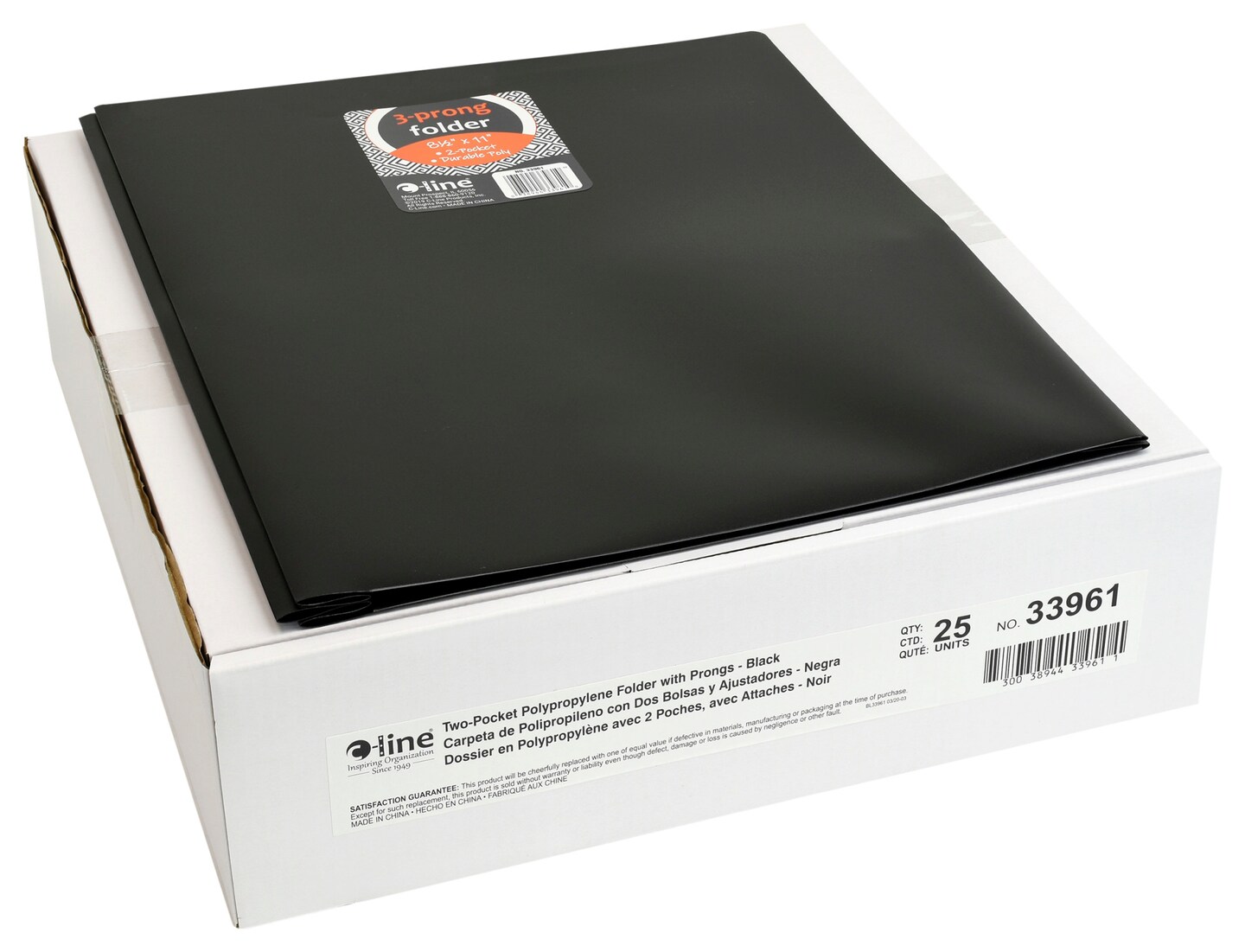 C-Line 2-Pocket Poly Portfolio with Prongs, Black, Pack of 25