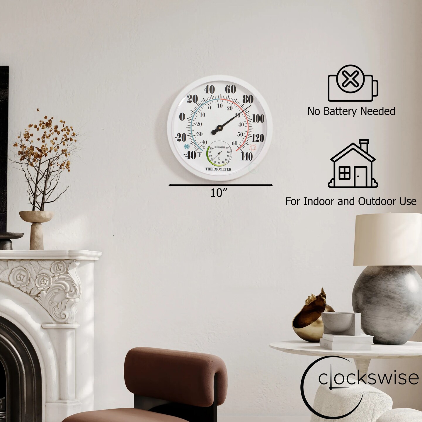 Clockswise 10" Outdoor Indoor Wall Thermometer and Hygrometer Combo Temperature & Humidity Gauge with Fahrenheit & Celsius Scale Decorative Weather Monitor for Home Garden Greenhouse or Office, White