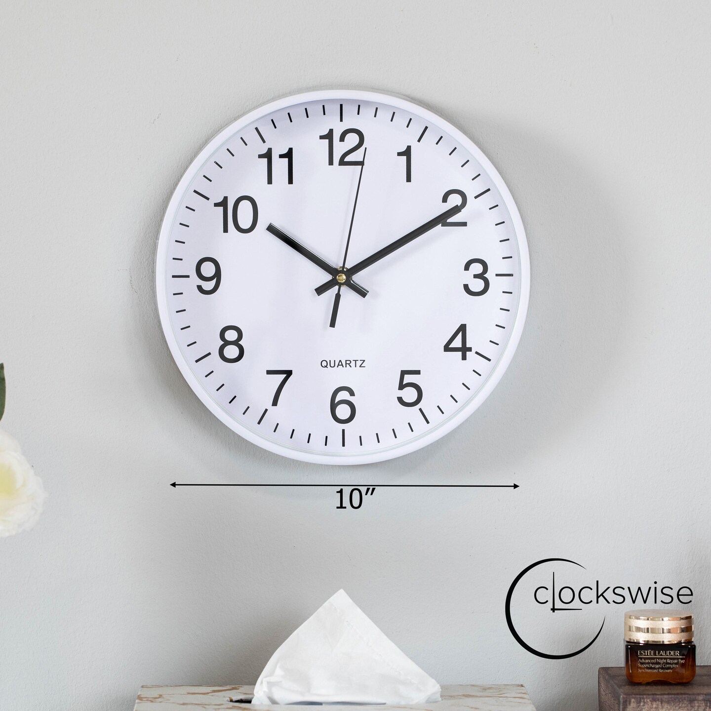 Clockswise Black Analog Clock – Silent, Non-Ticking for Wall, Office Desk, Table and Shelf, Battery-Operated Perfect for Home Office, Farmhouse Kitchen Decor, Bathroom, School and Bedroom Decor