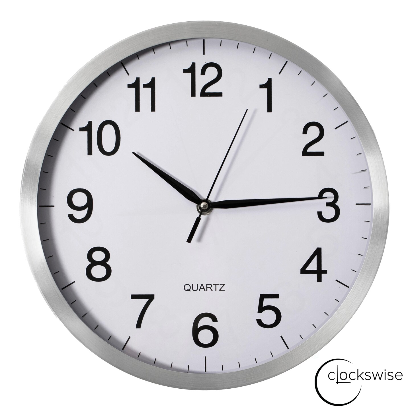 Clockswise Round Quartz Wall Clock Non-Ticking Battery Operated with Silent Sweep Movement, Aluminum Silver Frame, Perfect for Home Kitchen Office Living Room Study Hallway Classroom, Black Face