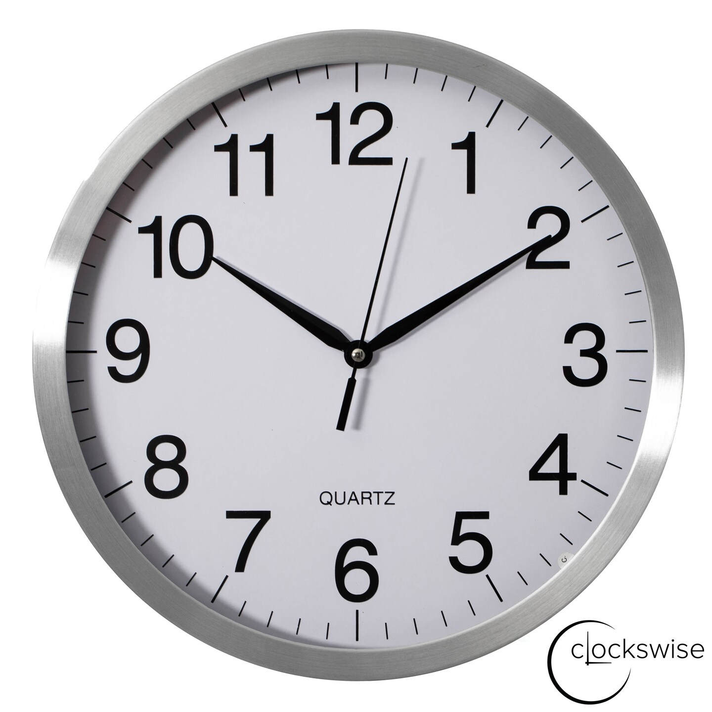 Clockswise Round Quartz Wall Clock Non-Ticking Battery Operated with Silent Sweep Movement, Aluminum Silver Frame, Perfect for Home Kitchen Office Living Room Study Hallway Classroom, Black Face